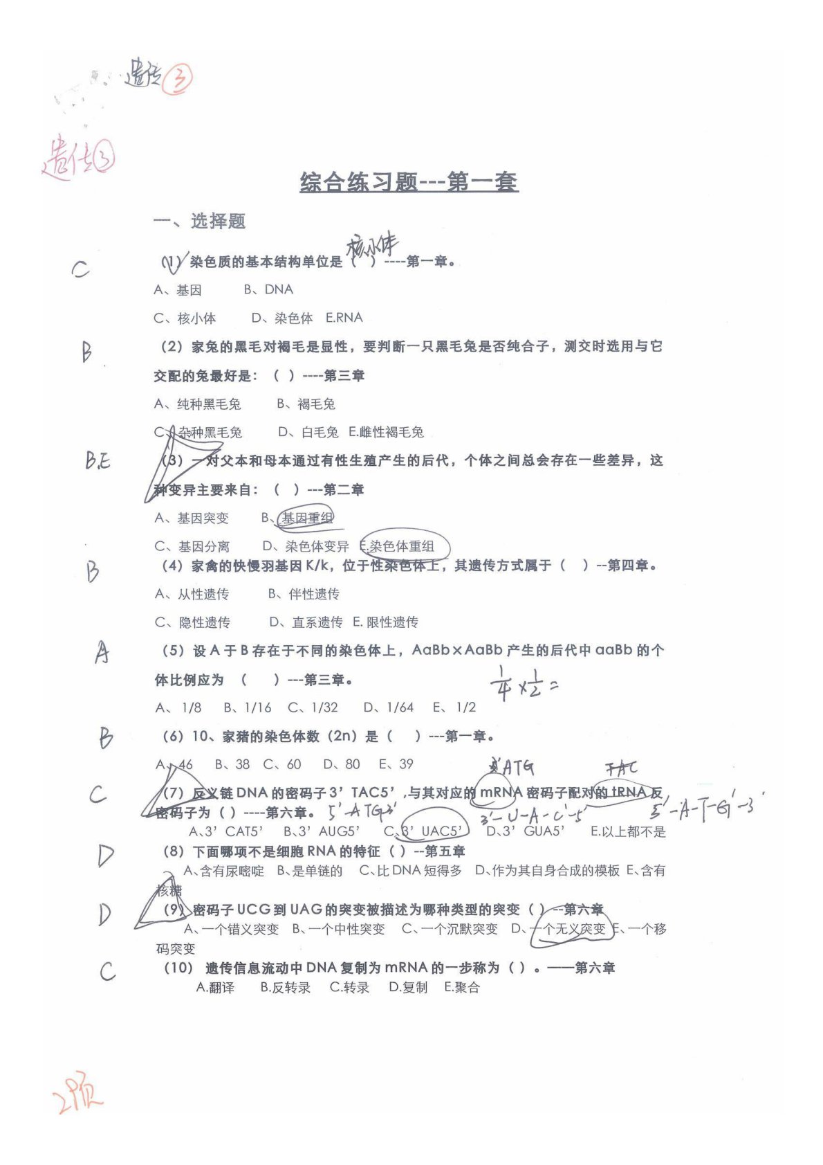 江西农业大学340农业知识综合二遗传3