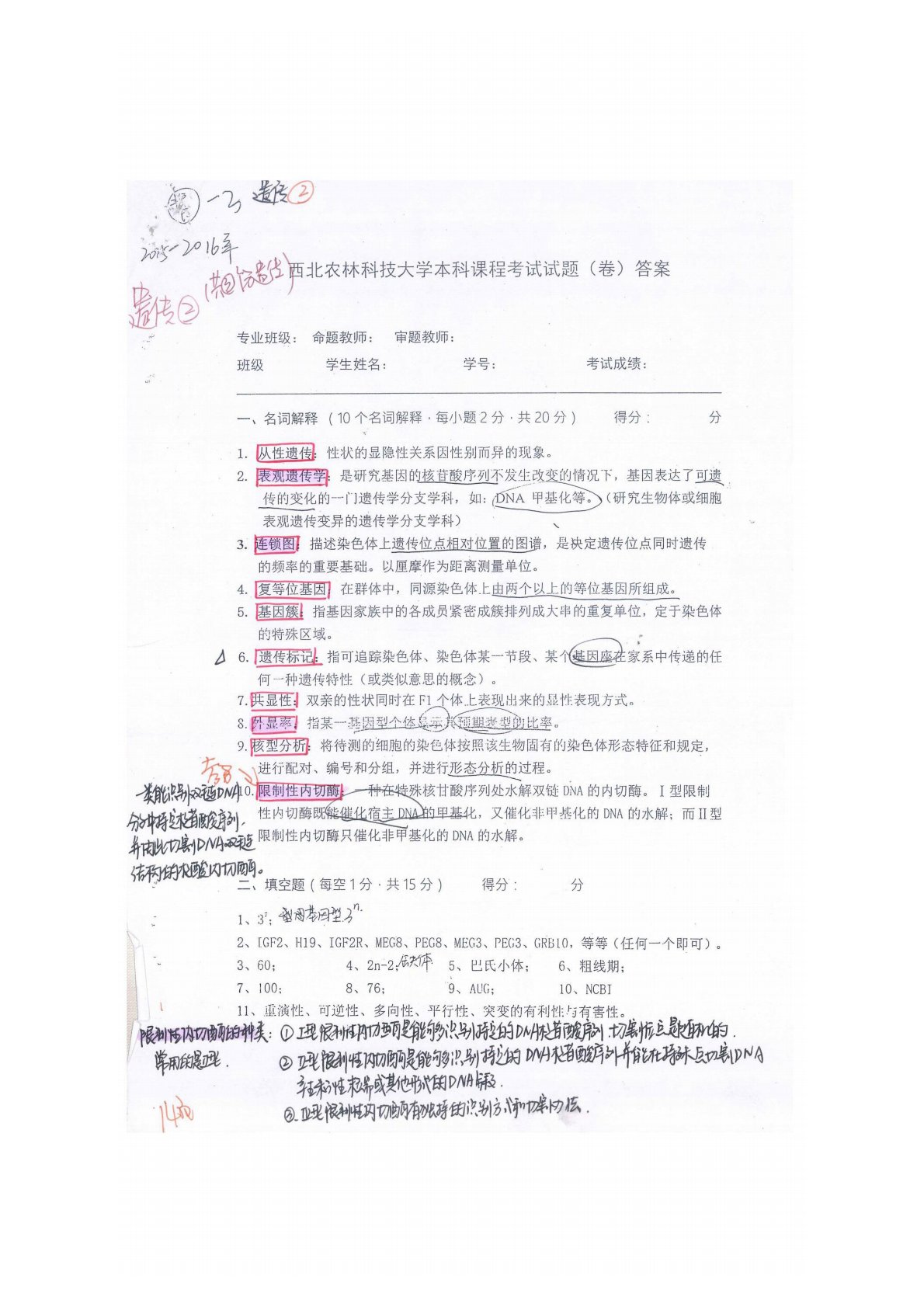 江西农业大学340农业知识综合二遗传2