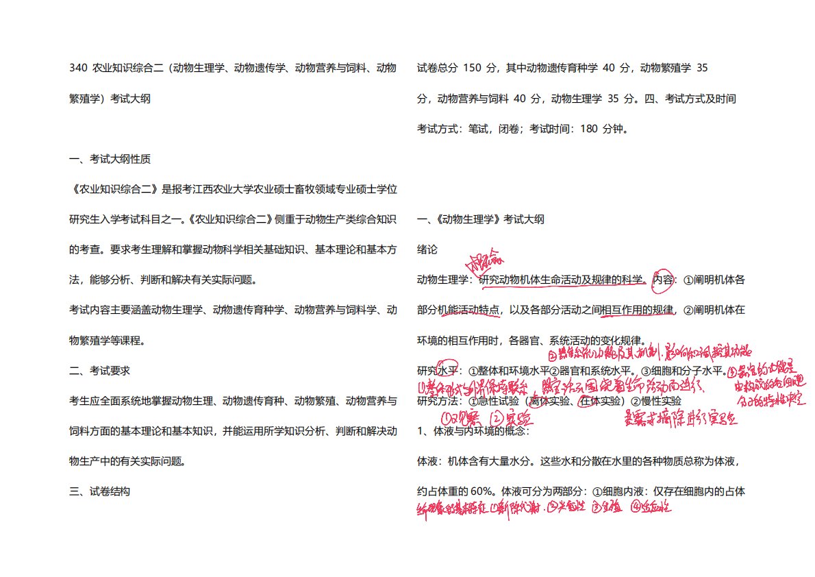 江西农业大学340农业知识综合二农综二(带生理学自写版