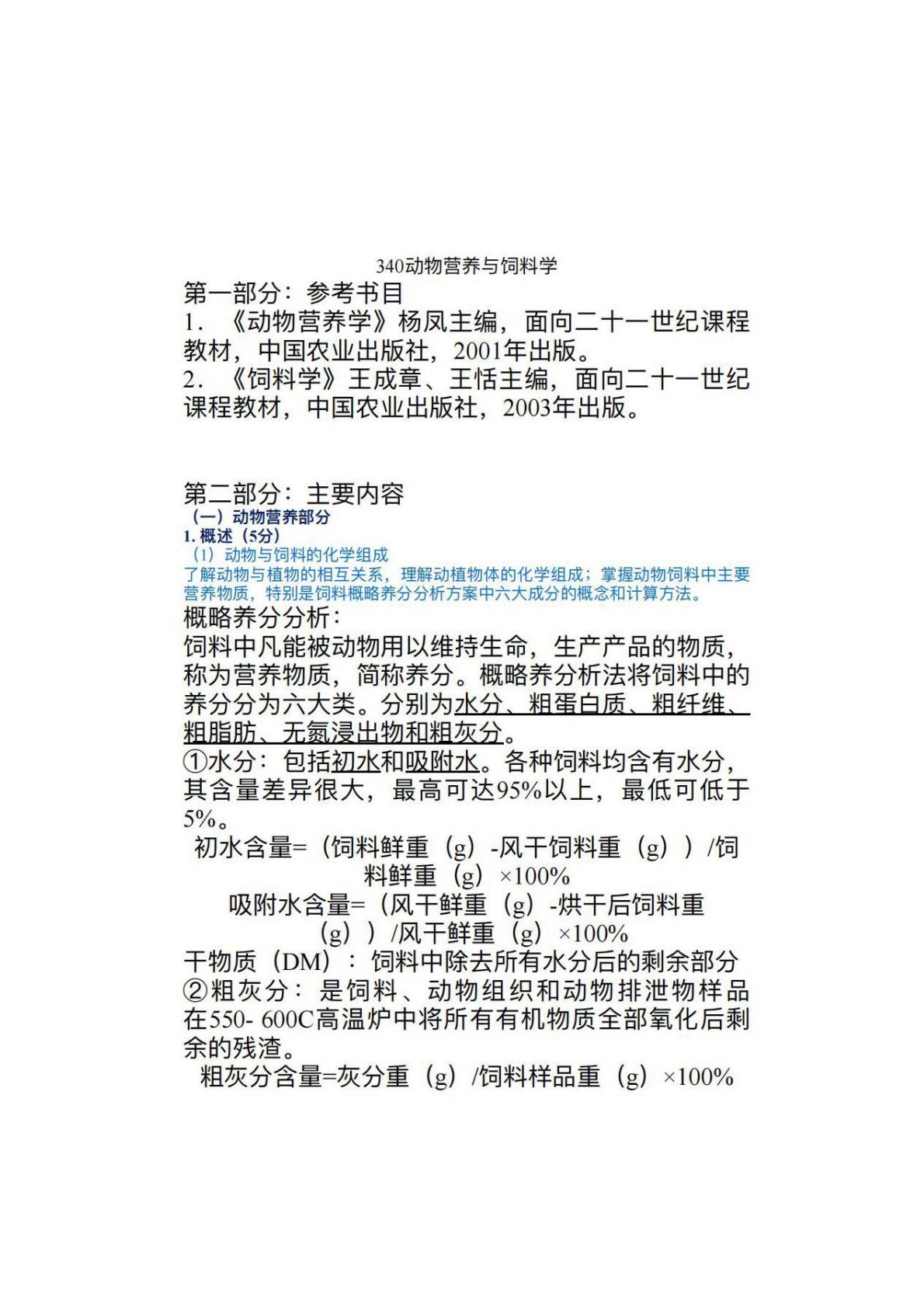 江西农业大学340农业知识综合二340动物营养与饲料学(营养学)