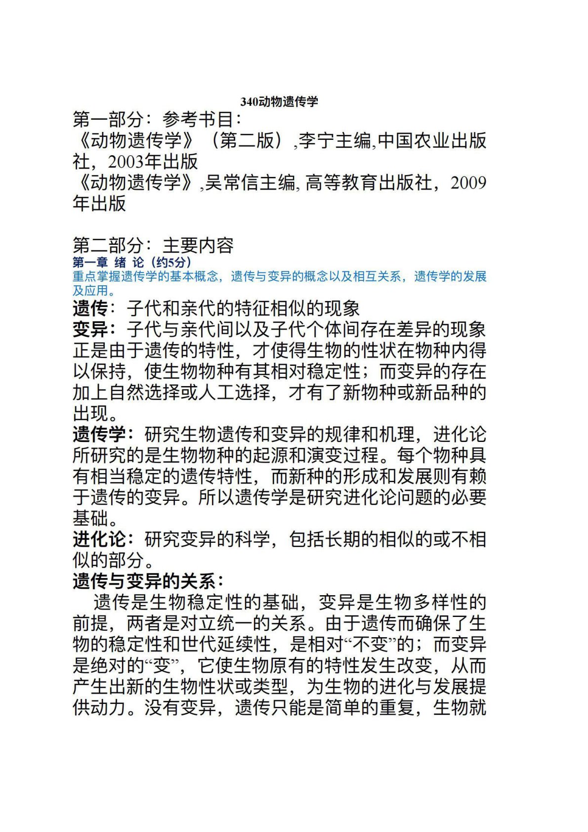 江西农业大学340农业知识综合二340动物遗传学(营养学)
