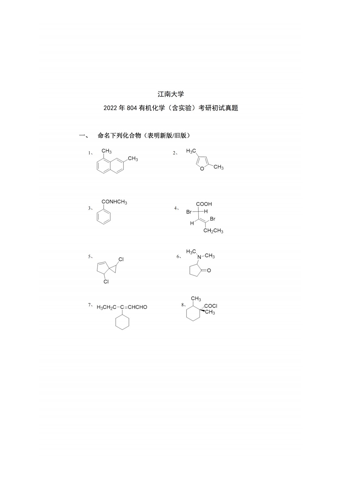 江南大学804有机化学(含实验)2022年真题