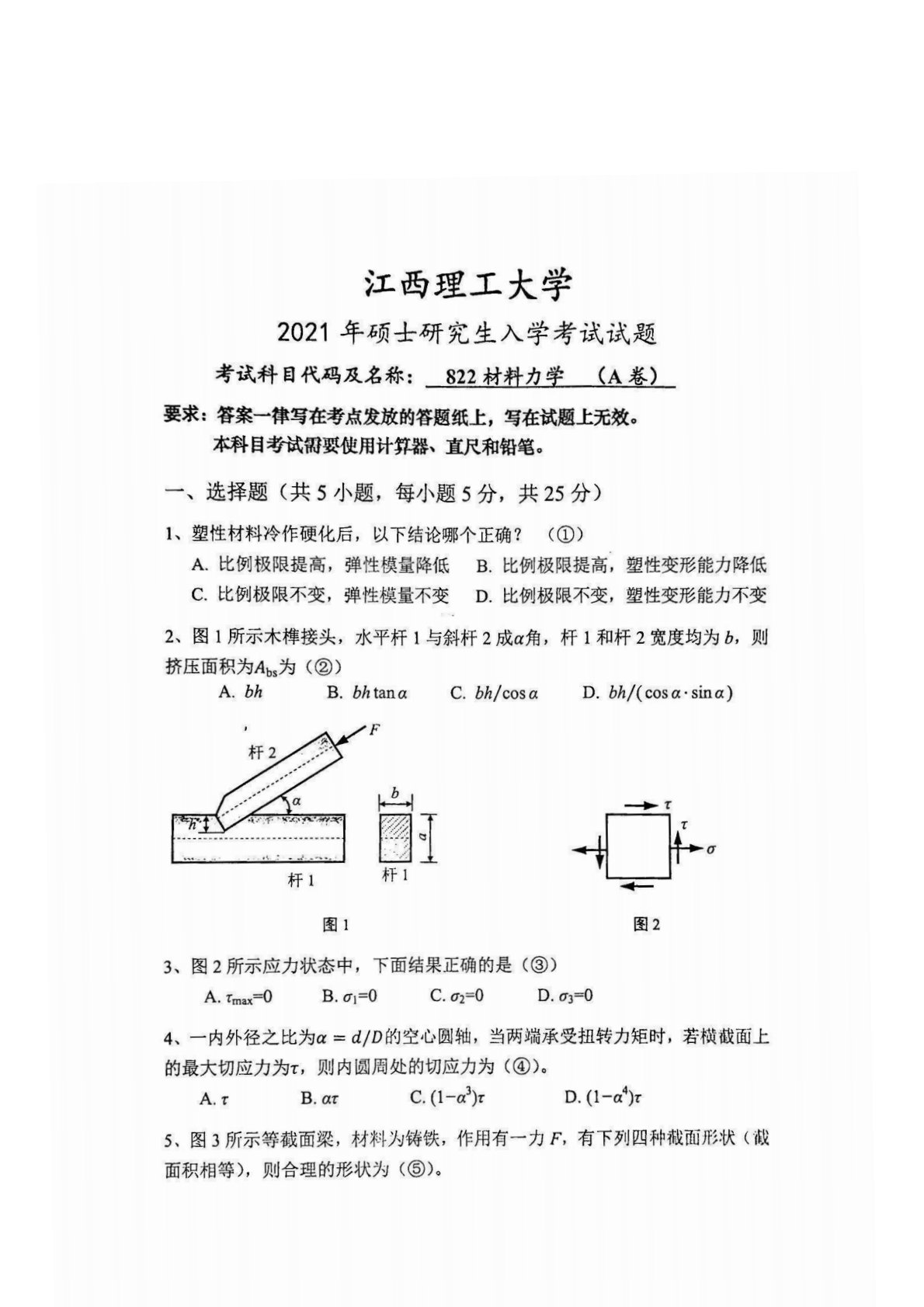 江西理工大学822工程力学2021年真题