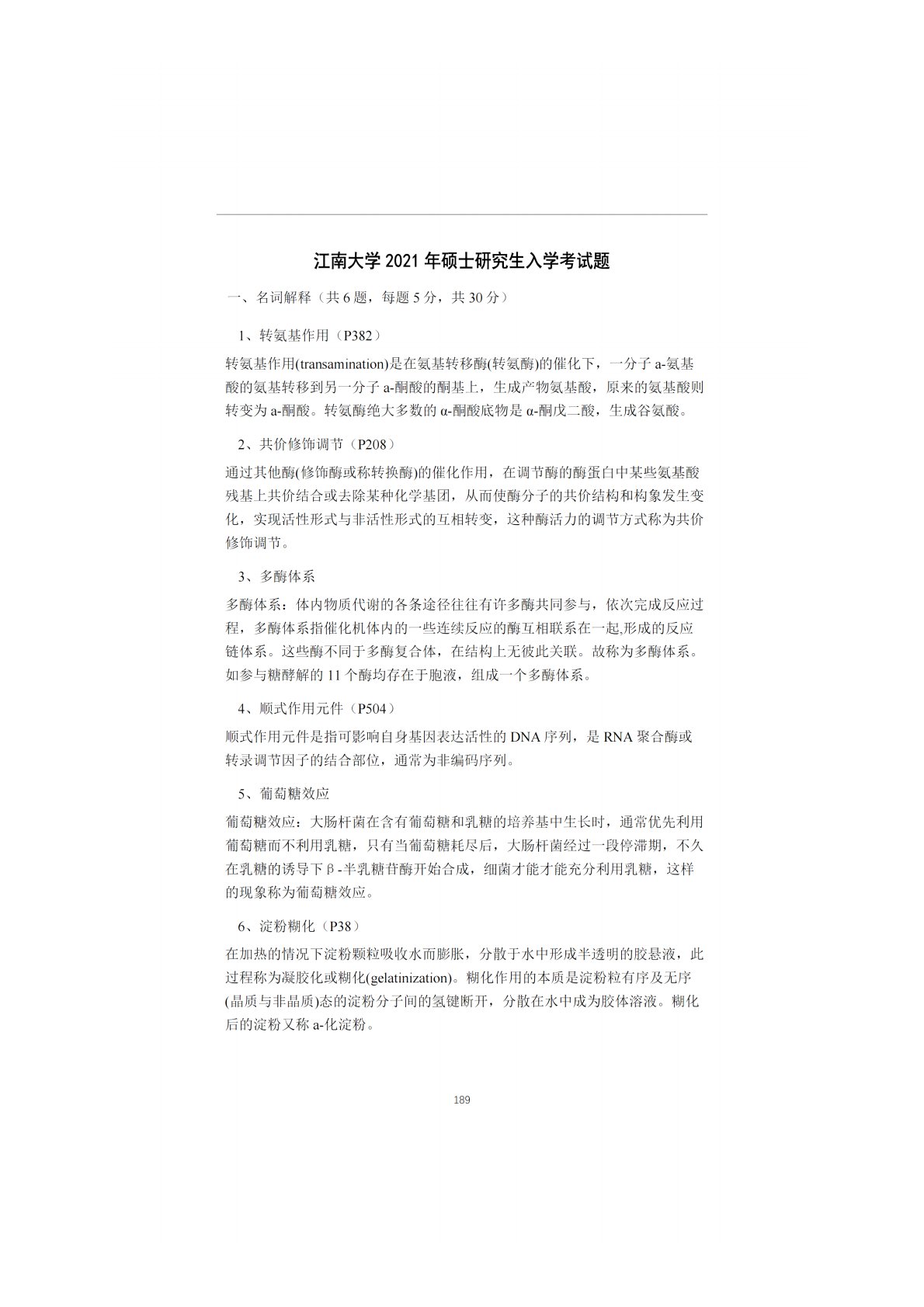 江南大学852食品科学与工程2021年真题及答案