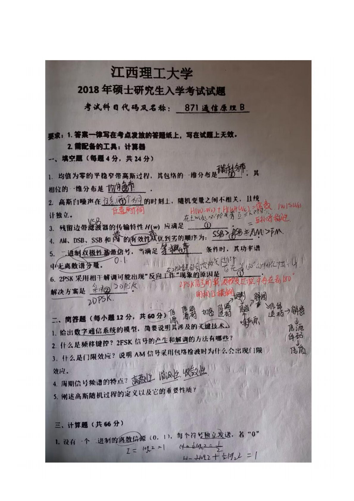 江西理工大学871通信原理2018真题B及答案