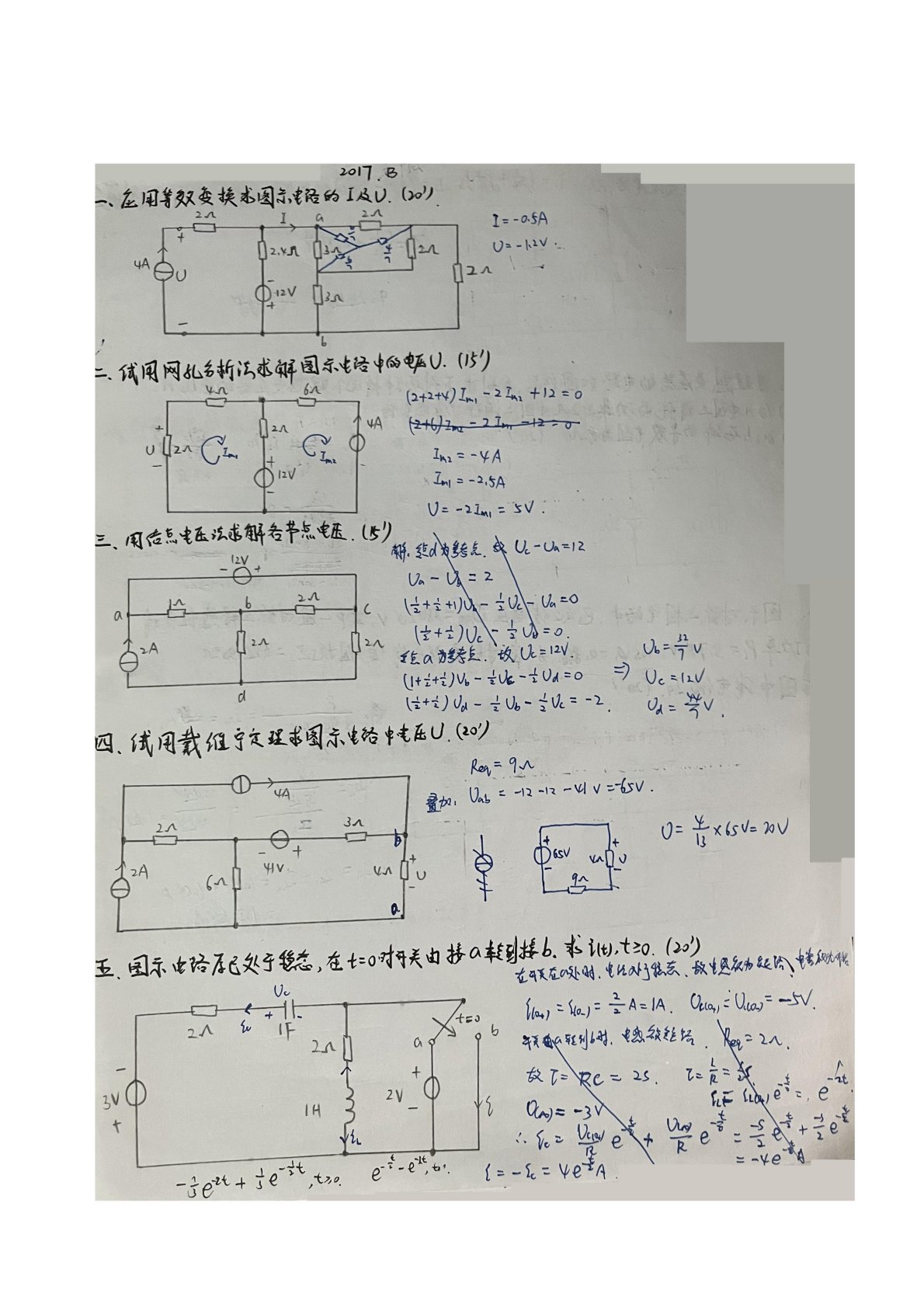 江西理工大学861电路2017年真题B答案