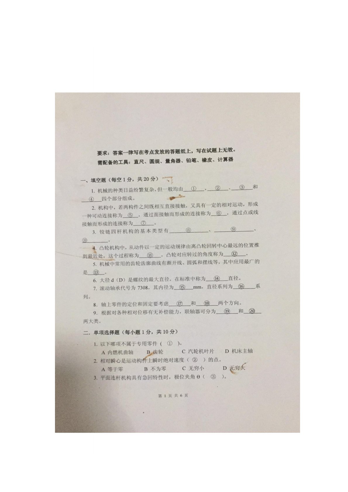 江西理工大学851机械设计基础2019年真题