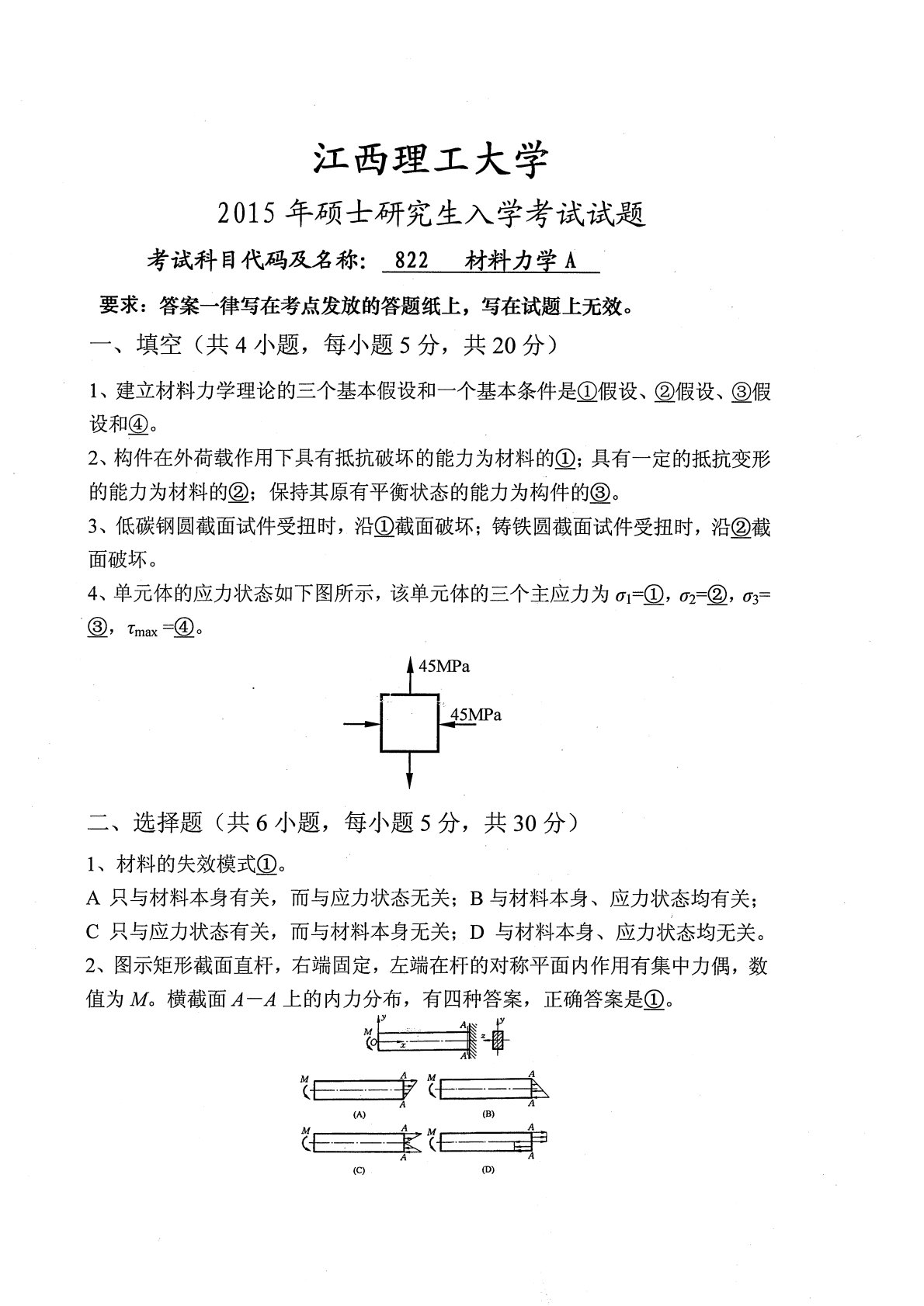 江西理工大学822工程力学2015年真题
