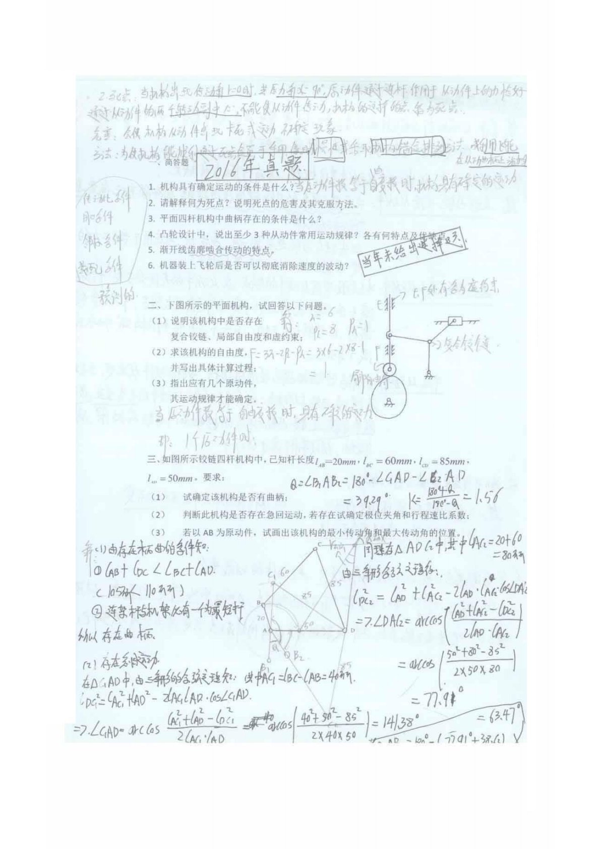 江苏理工学院801机械原理2016年真题