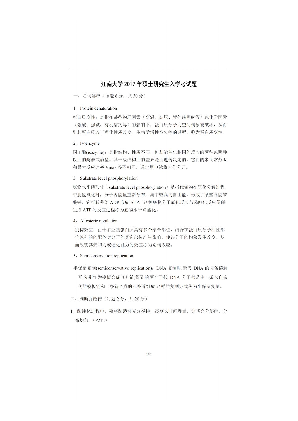 江南大学852食品科学与工程2017年真题及答案