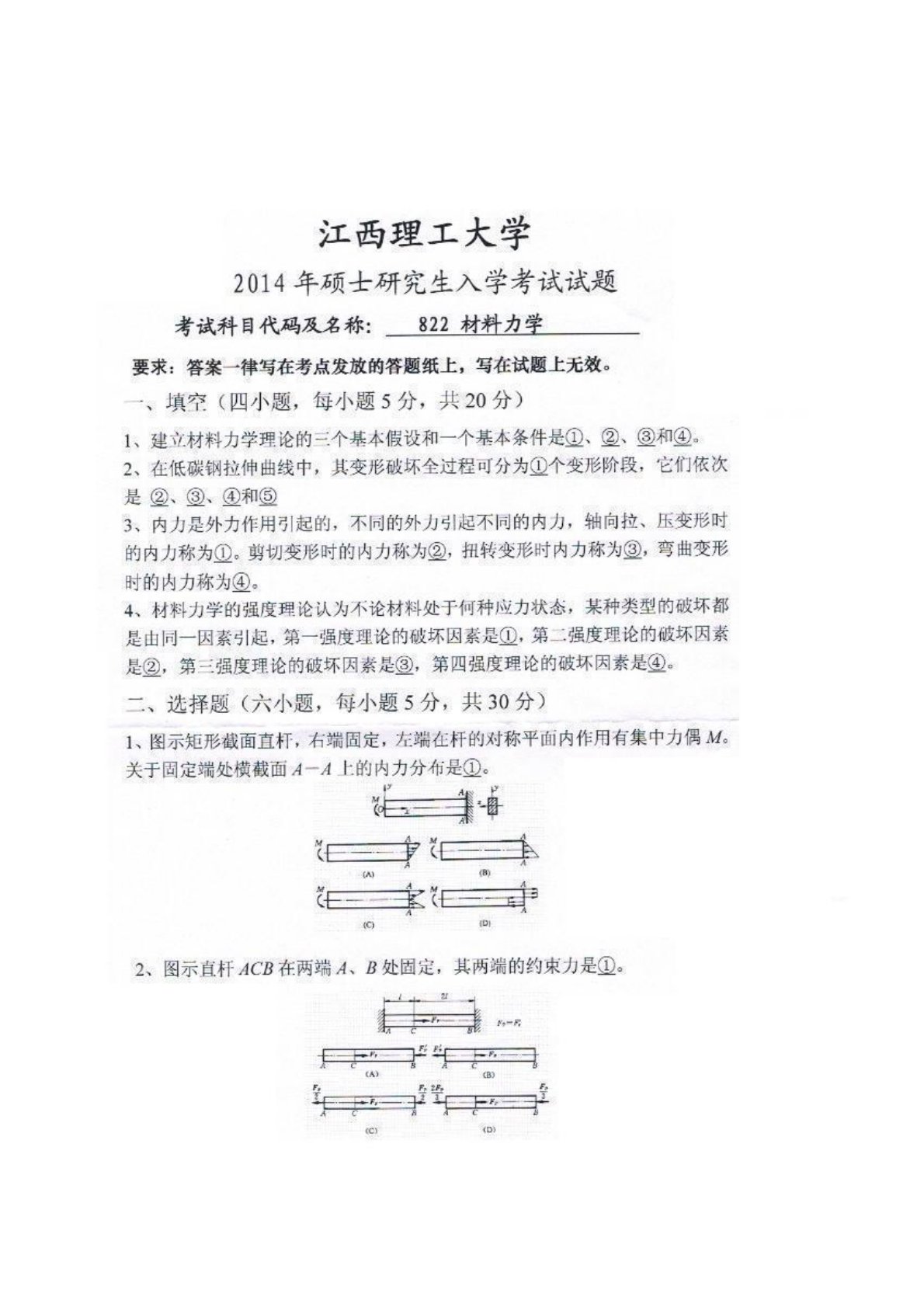 江西理工大学822工程力学2014年真题