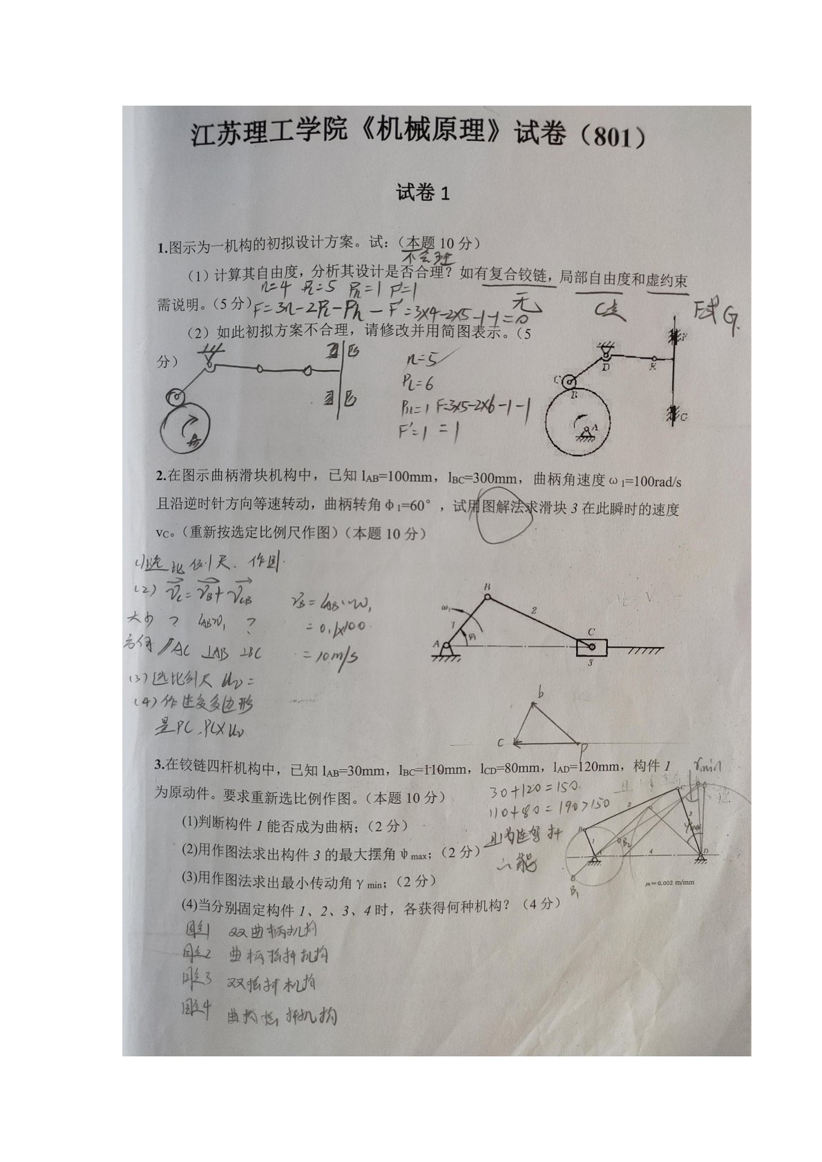 江苏理工学院801机械原理试卷1答案