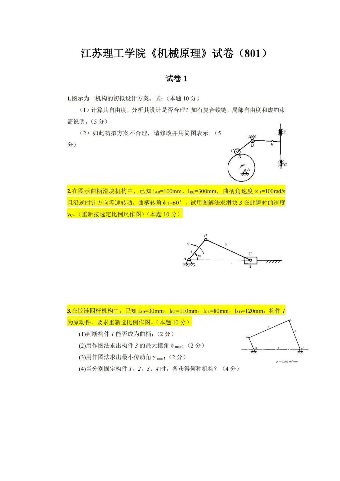 江苏理工学院801机械原理试卷1