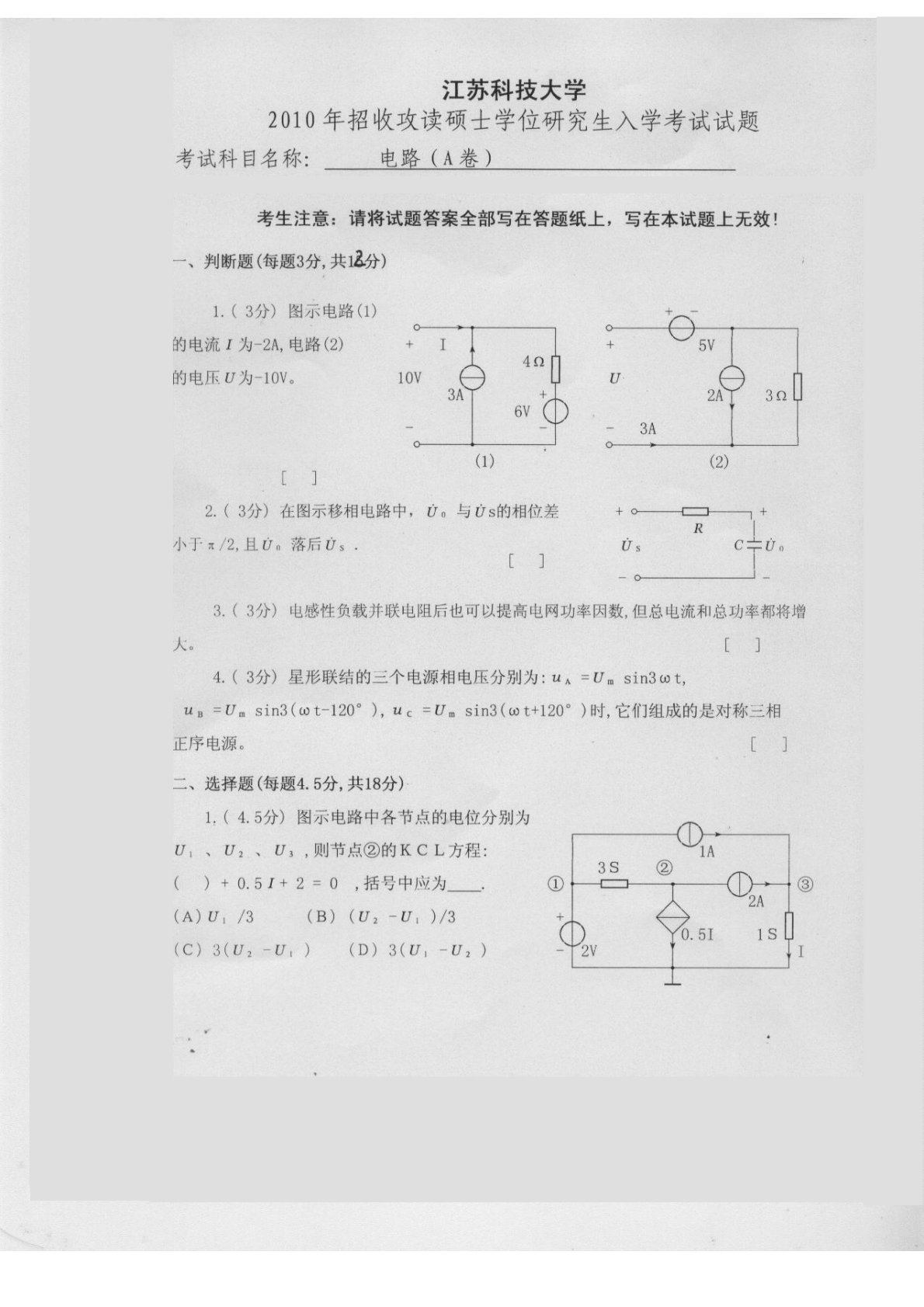 江苏科技大学2010年811电路考研真题