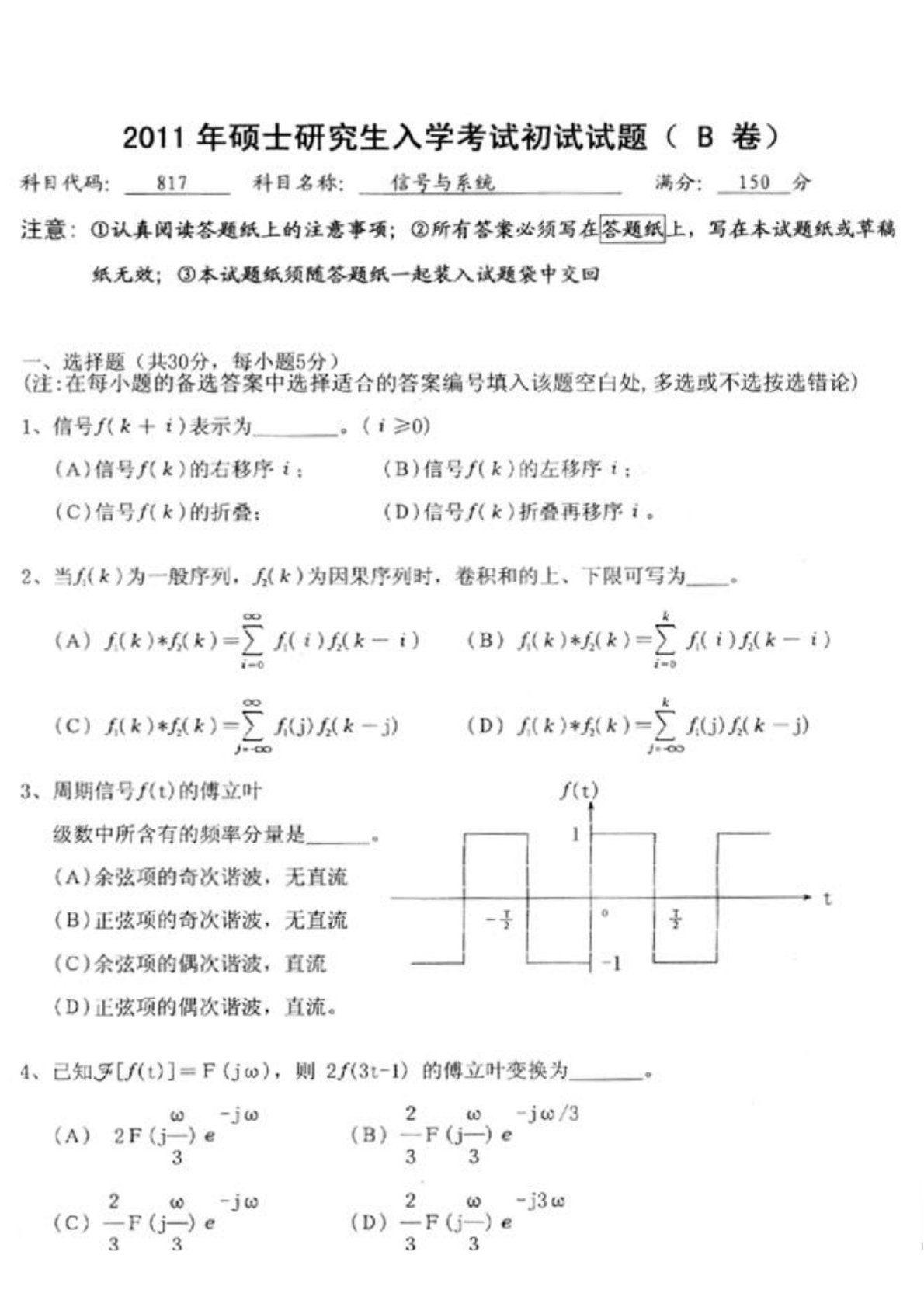 江苏科技大学815信号与系统2011年真题