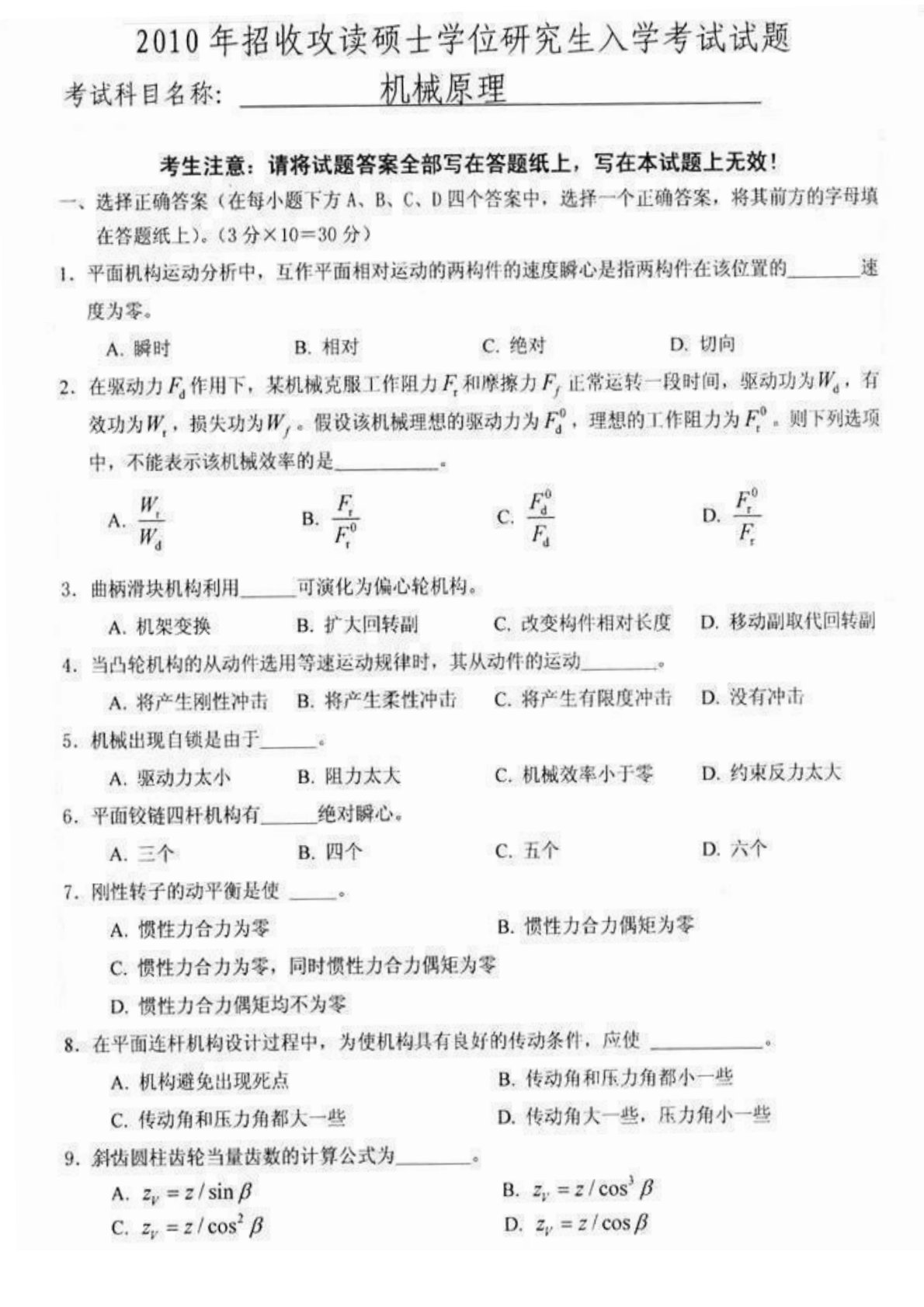 江苏科技大学810机械原理2010年真题