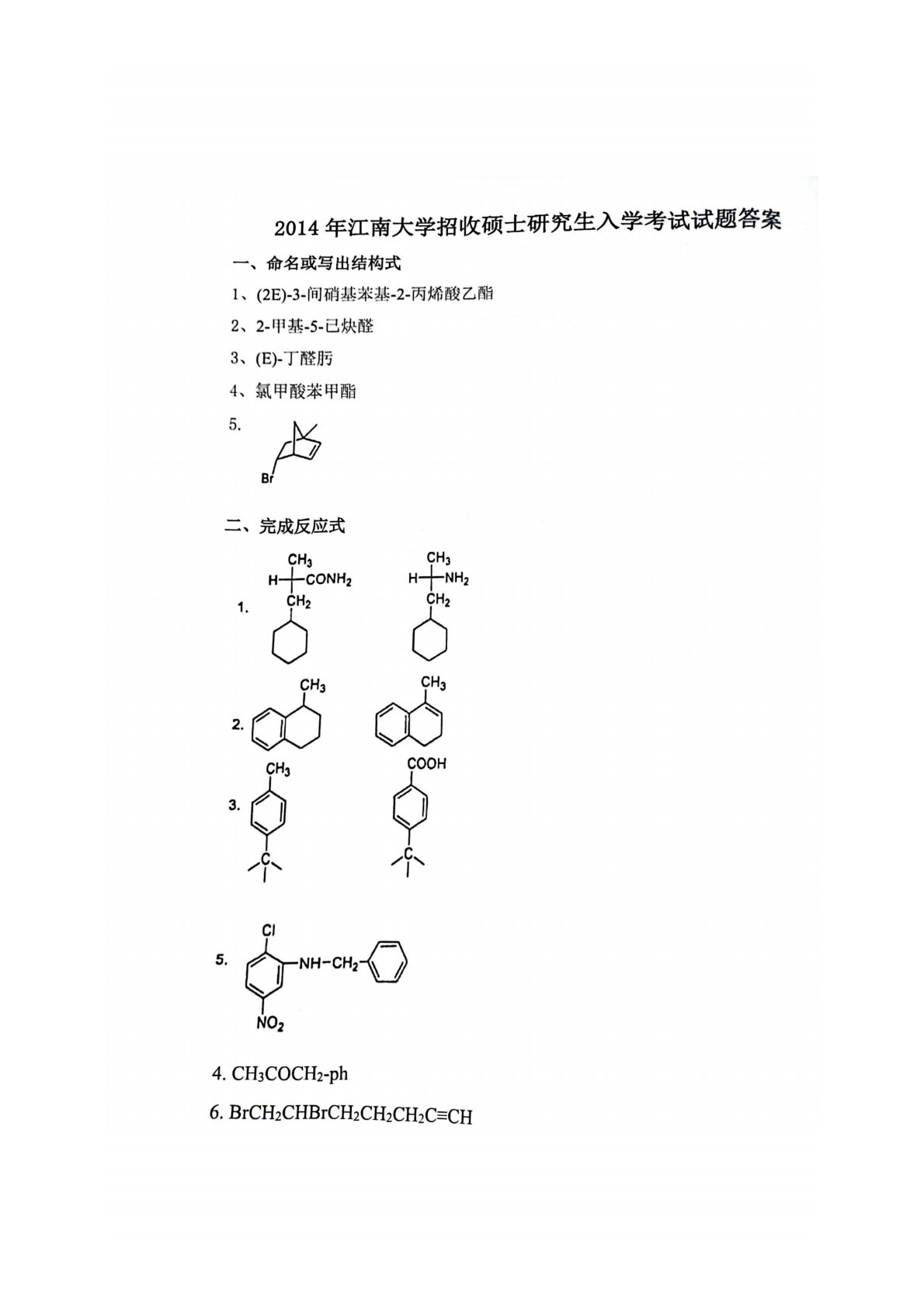 江南大学804有机化学(含实验)2014年真题答案