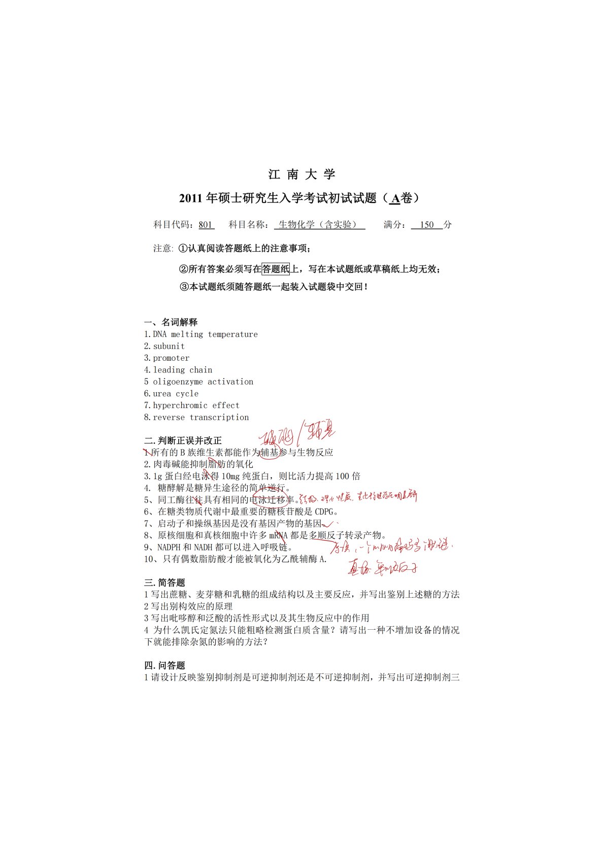 江南大学801生物化学2011年真题(1)