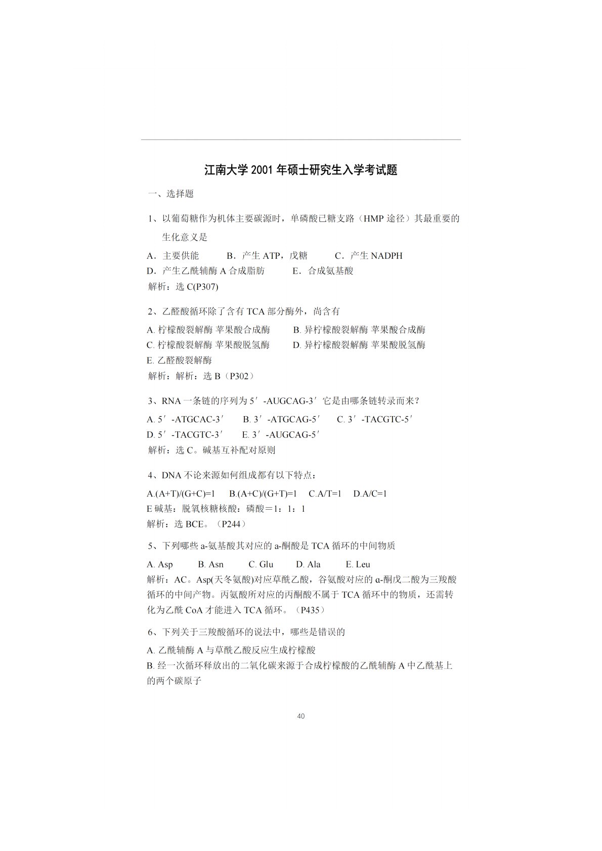 江南大学852食品科学与工程2001年真题及答案