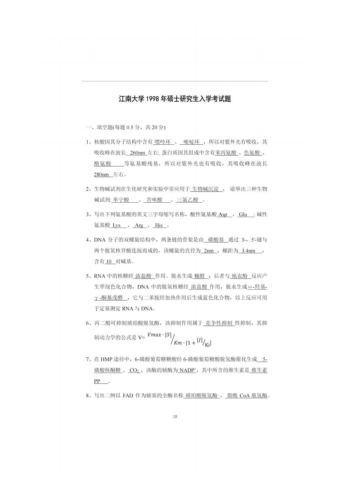 江南大学852食品科学与工程1998年真题及答案
