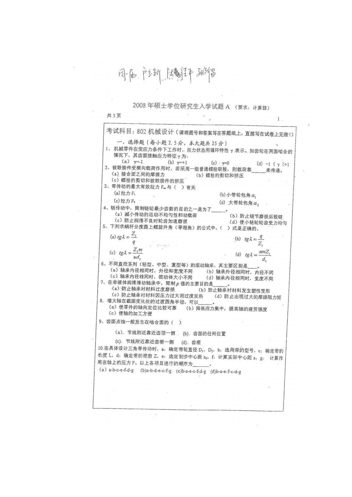 江南大学819机械设计2008年真题