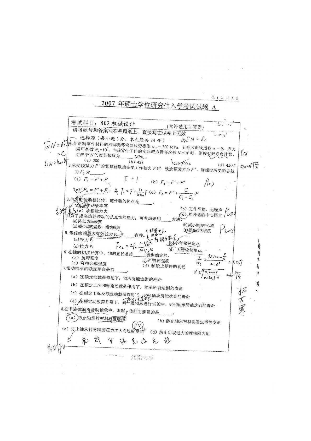 江南大学819机械设计2007年真题