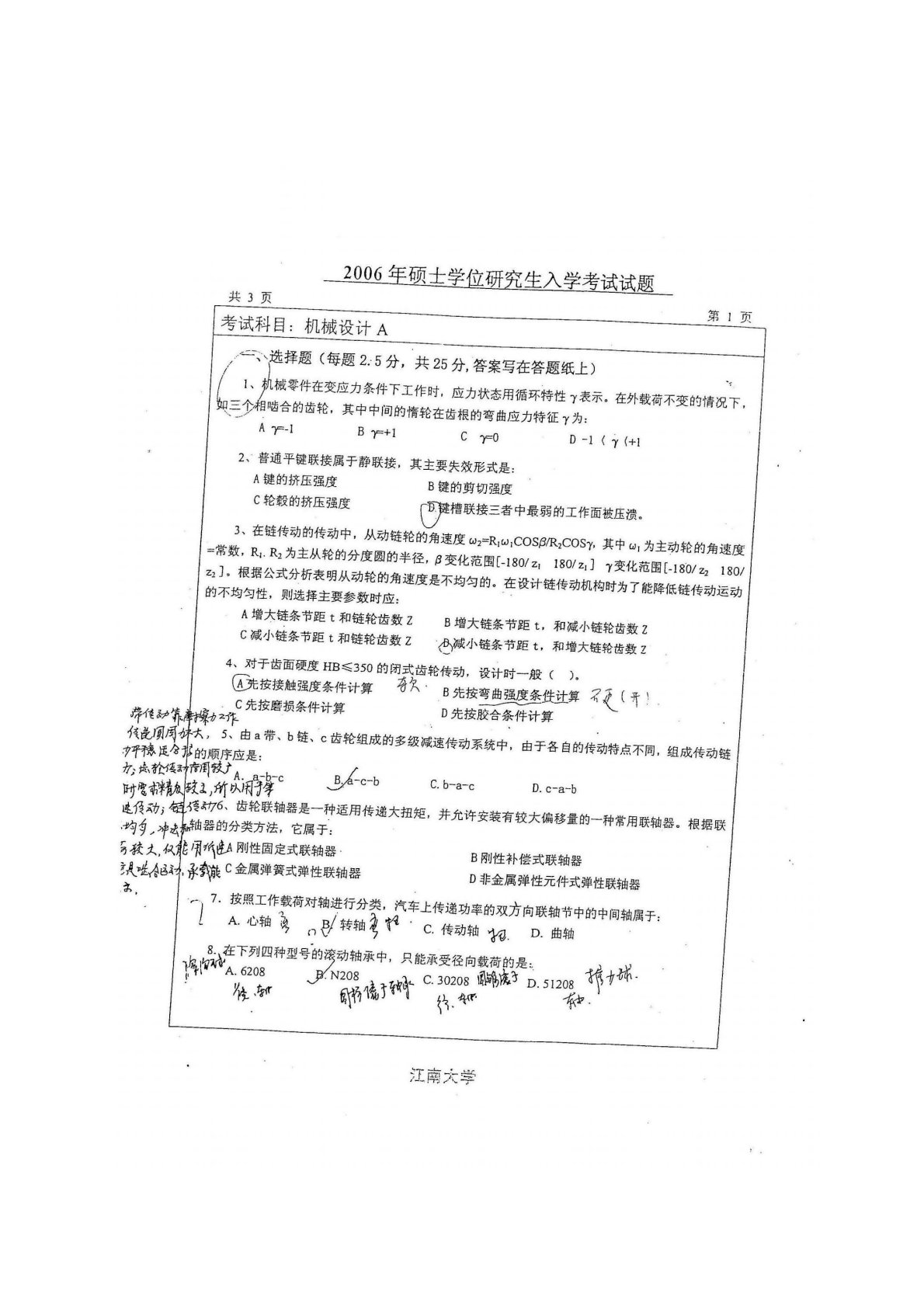 江南大学819机械设计2006年真题