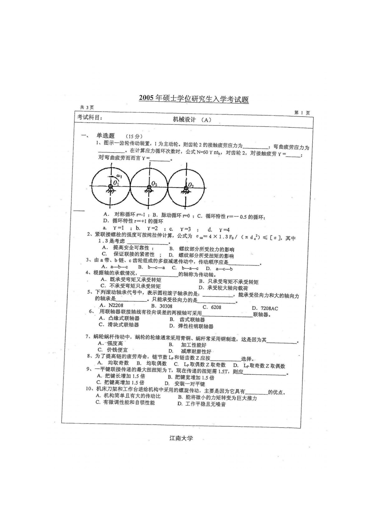 江南大学819机械设计2005年真题