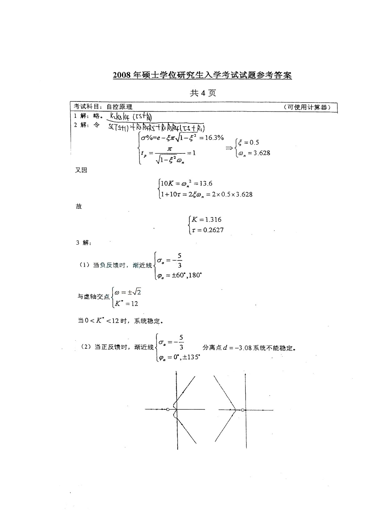 江南大学807自动控制原理2008年真题答案