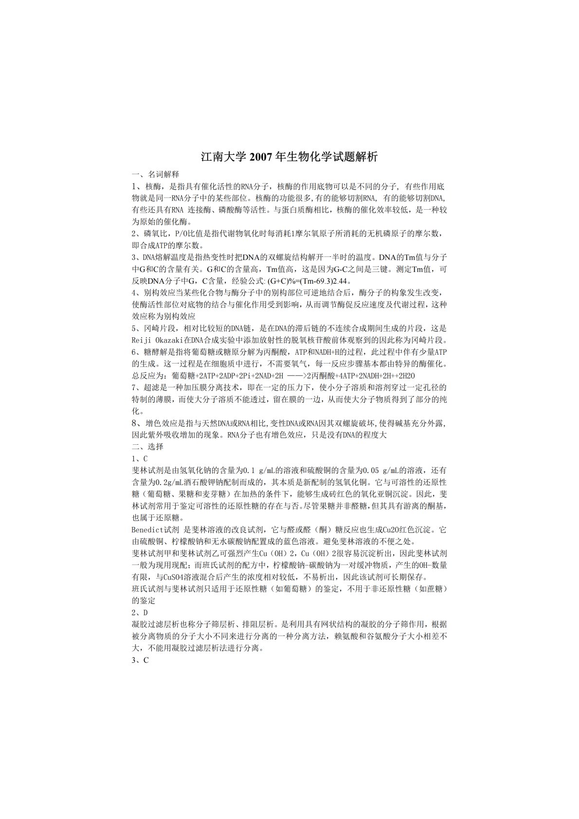 江南大学801生物化学2007年真题答案