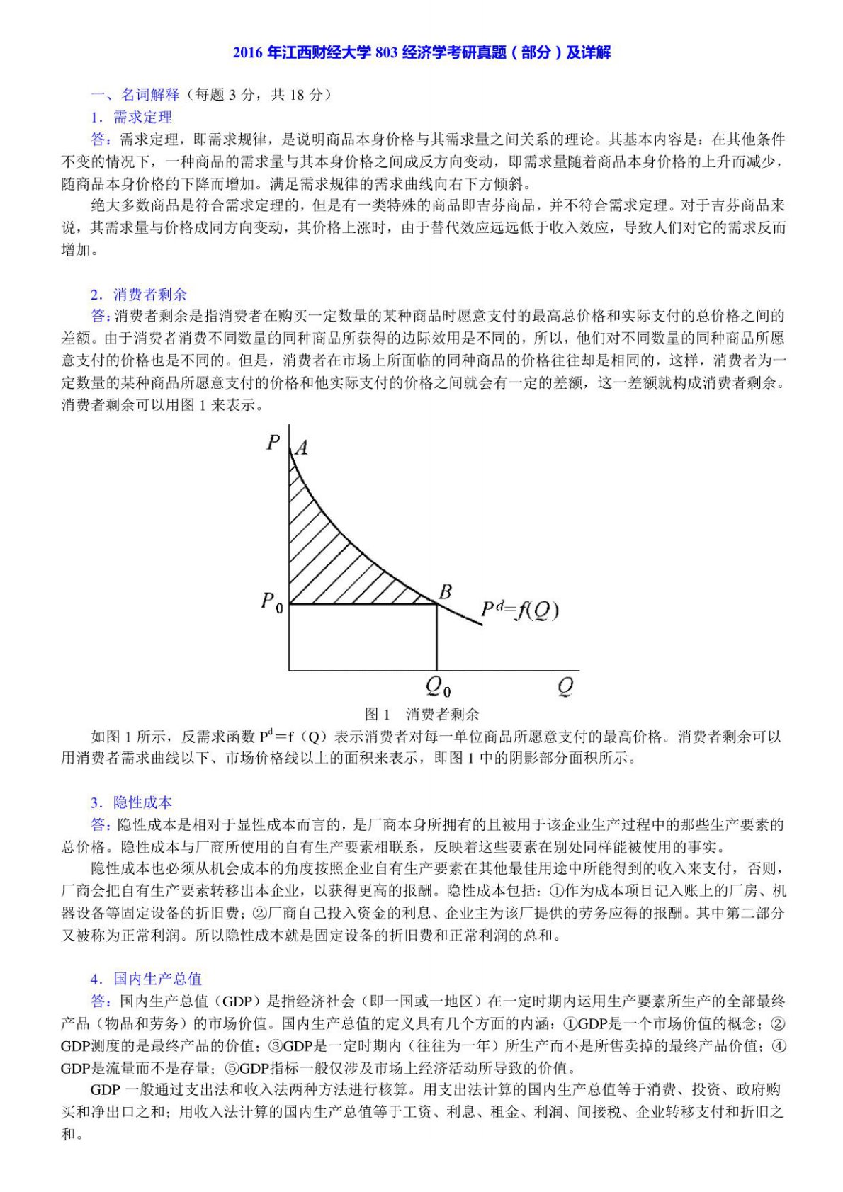 江西财经大学802经济学基础2016年真题答案 (部分)