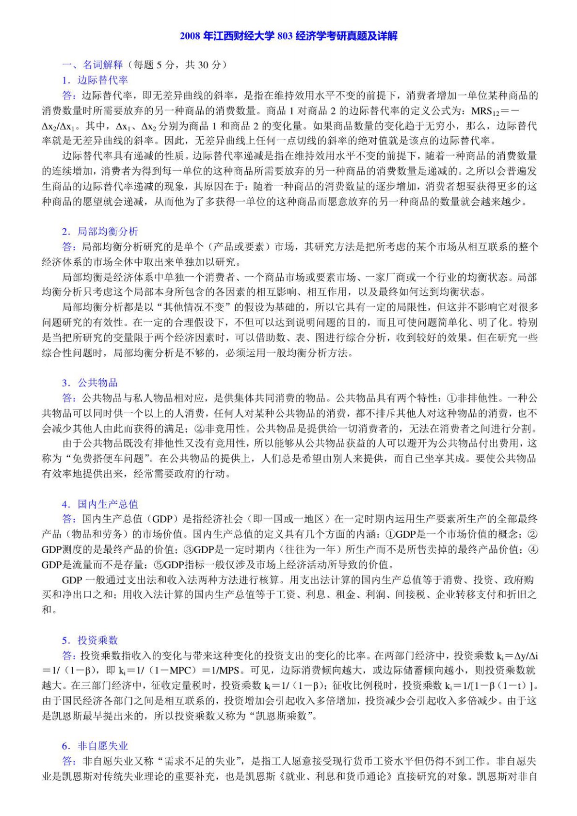 江西财经大学802经济学基础2008年真题及答案