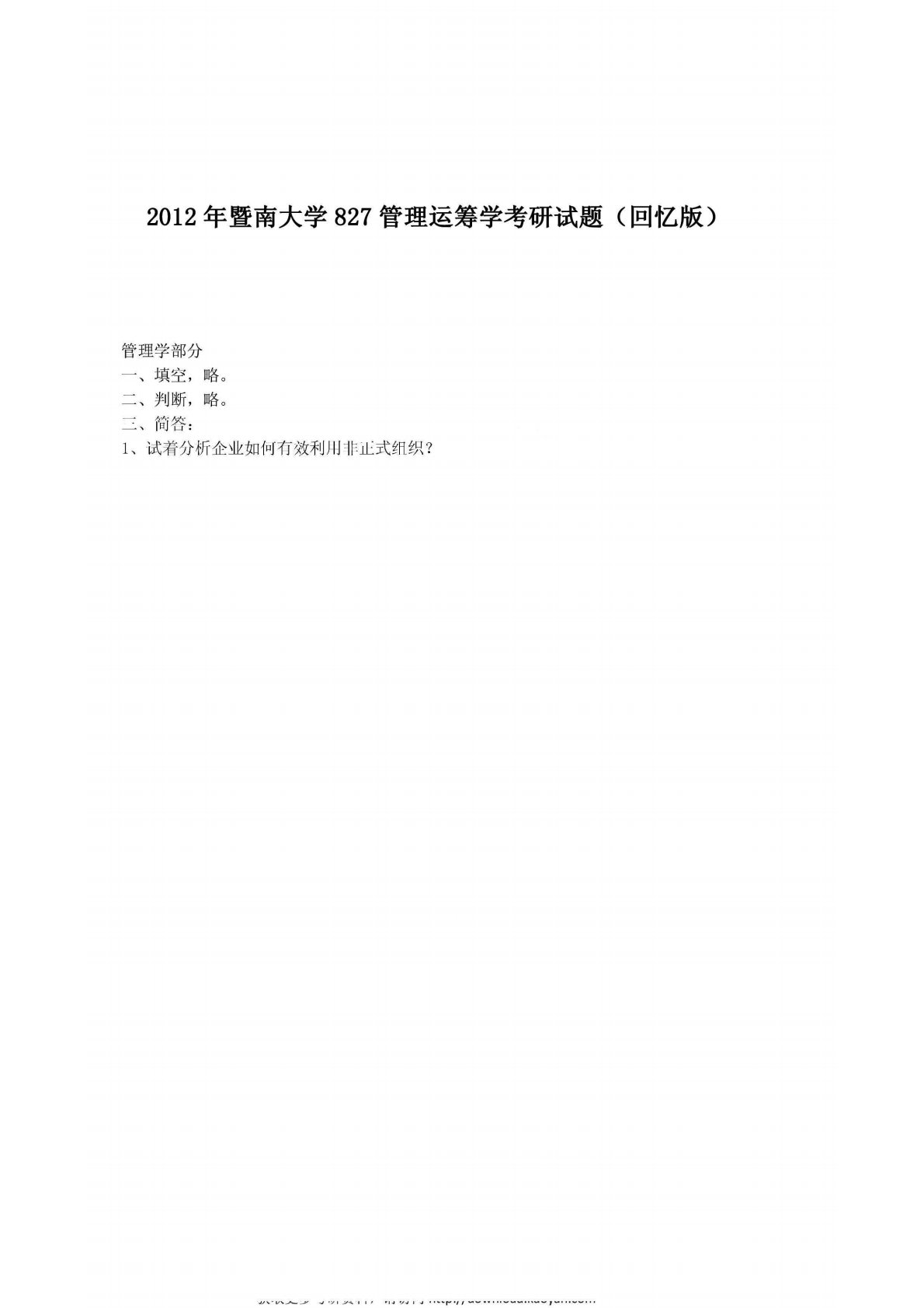 暨南大学827管理运筹学2012年真题回忆版