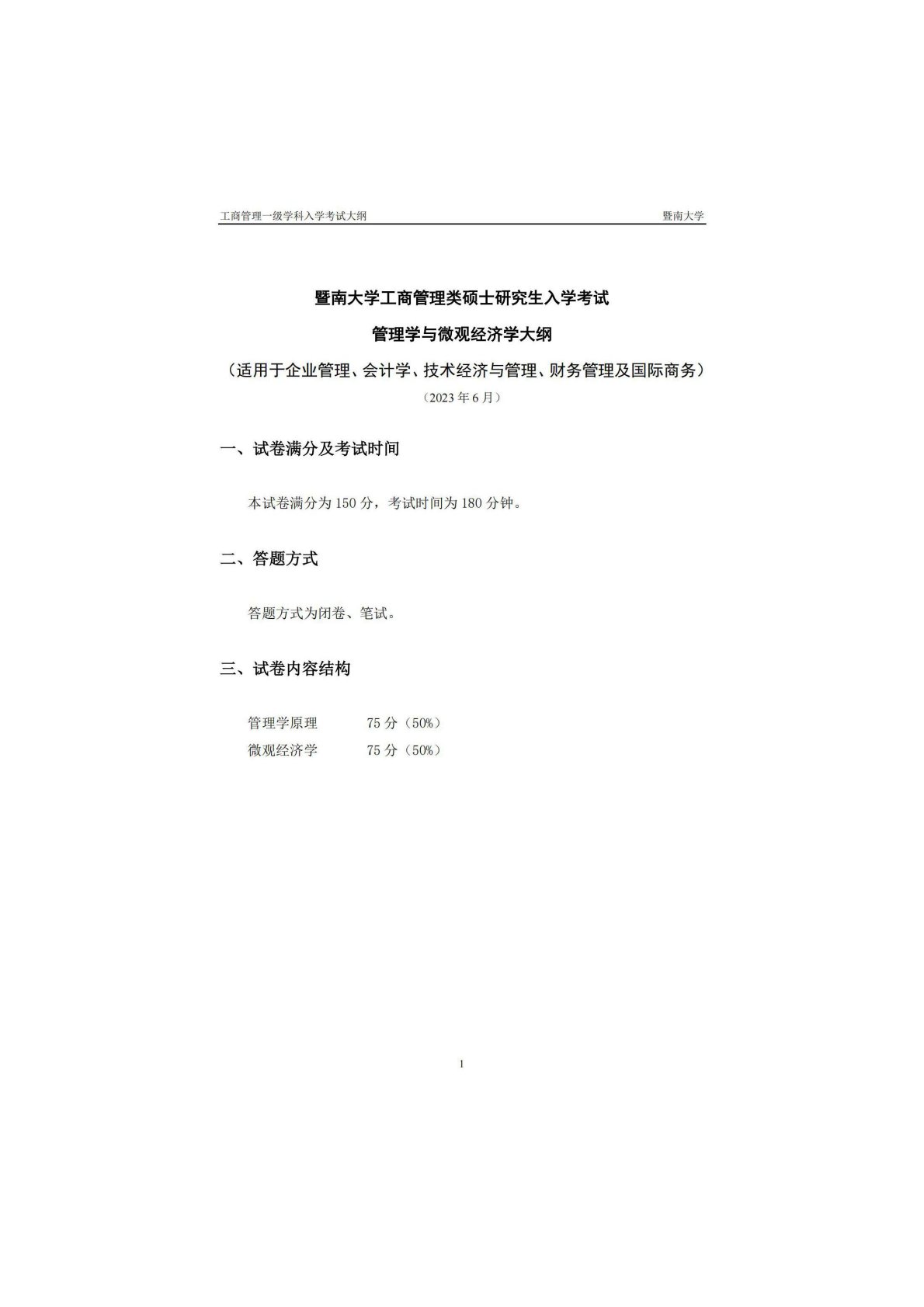 暨南大学828管理学及微观经济学2024年考试大纲