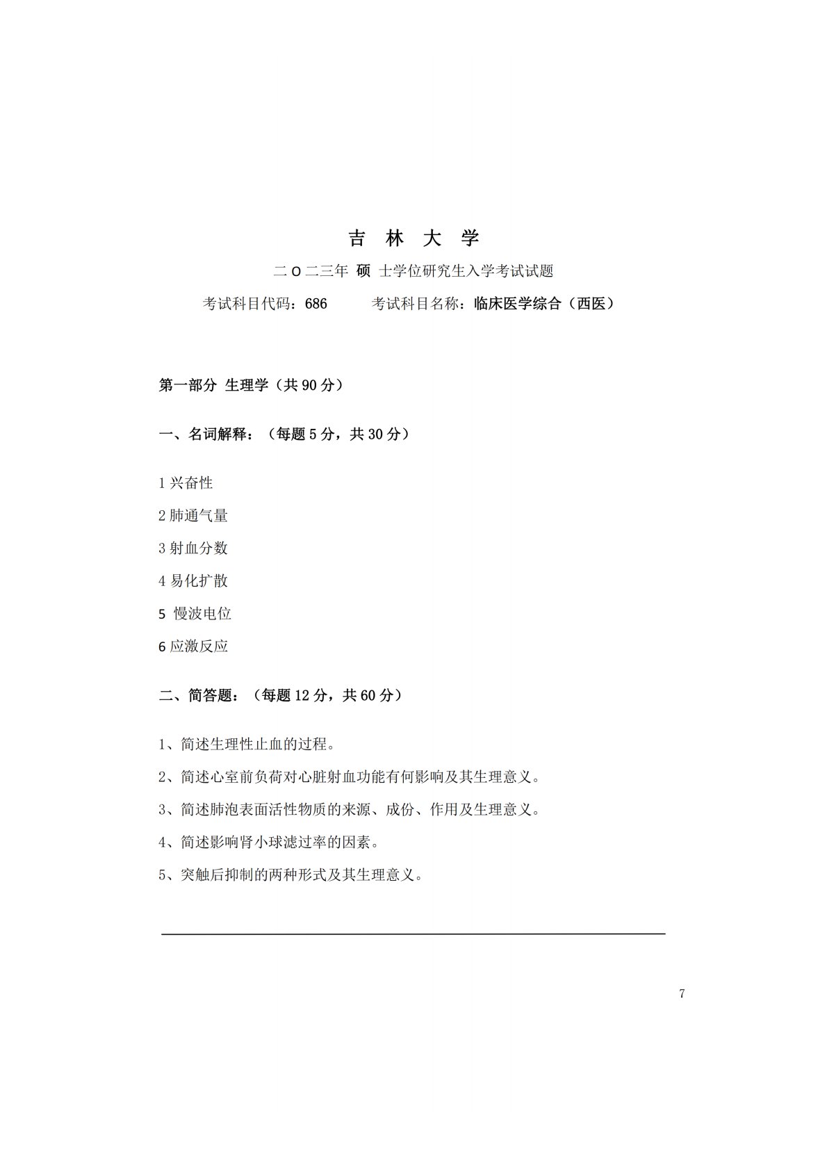 吉林大学686临床医学综合(西医)2023年真题