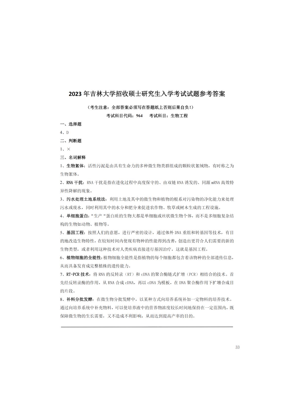 吉林大学846生物工程2023年真题答案