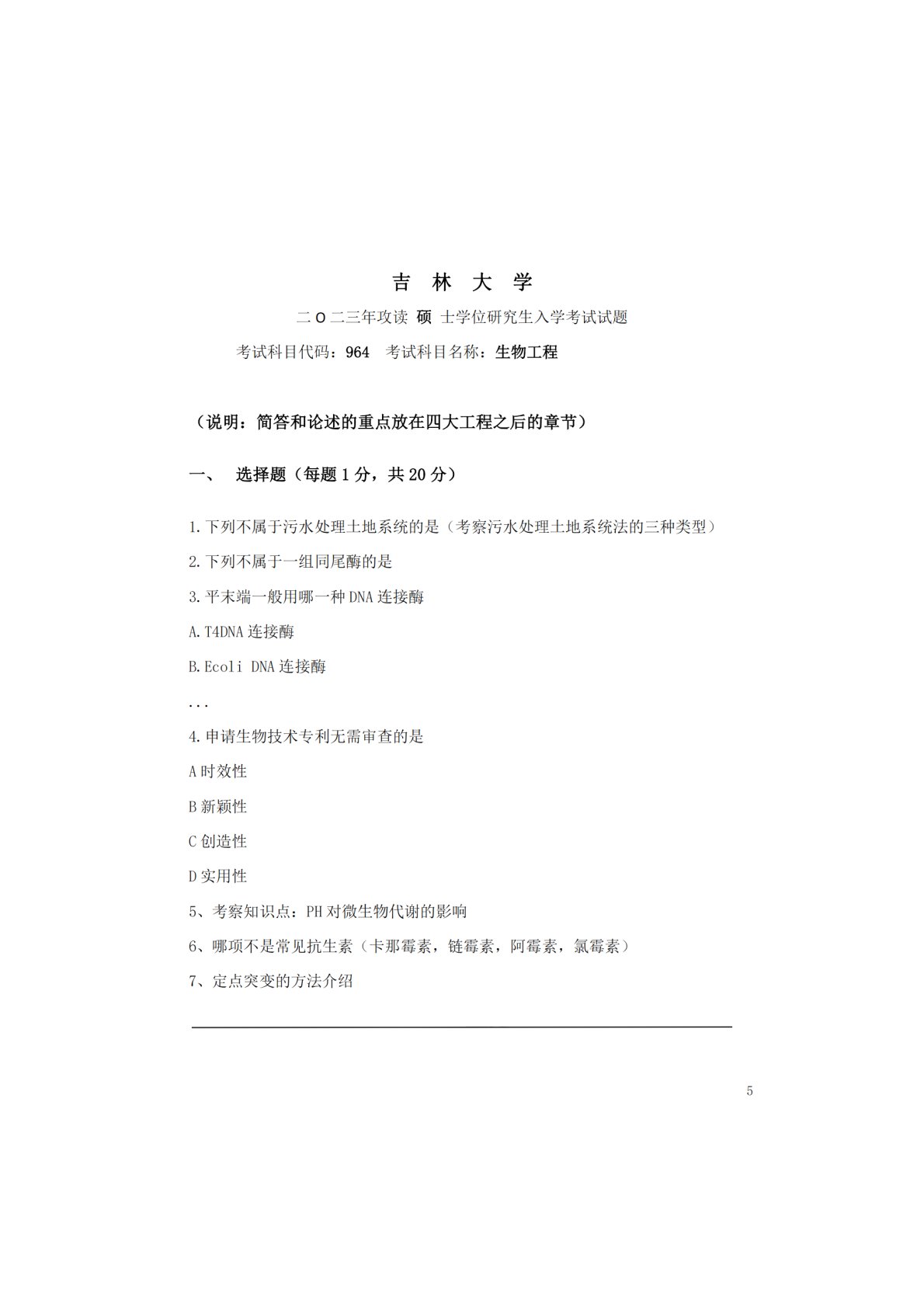 吉林大学846生物工程2023年真题