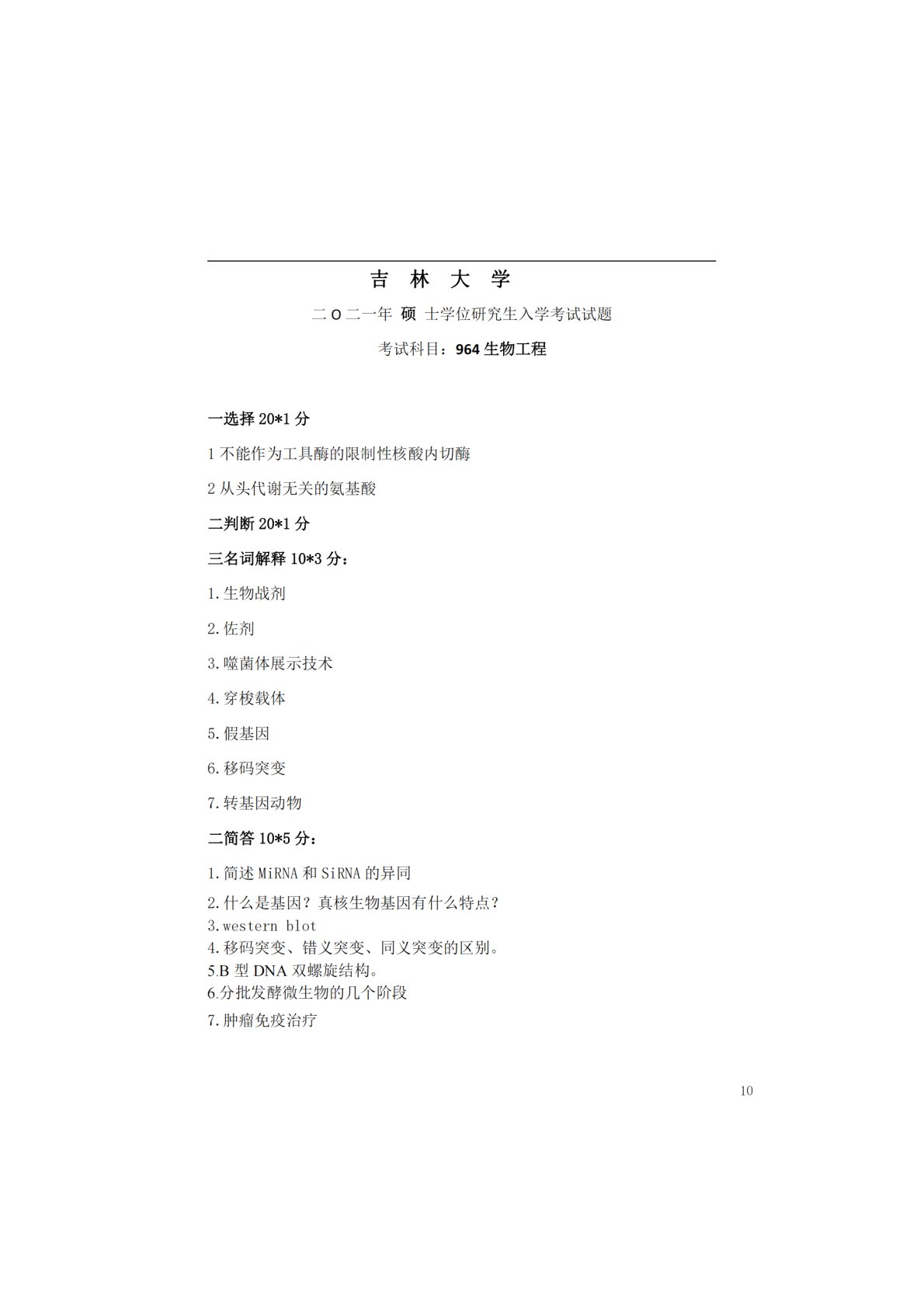 吉林大学846生物工程2021年真题