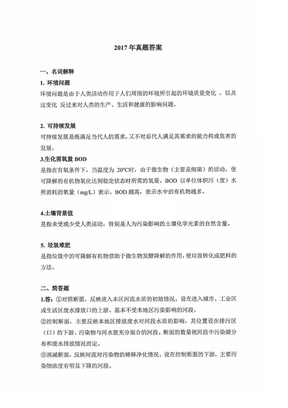 暨南大学824环境保护概论2017年真题答案