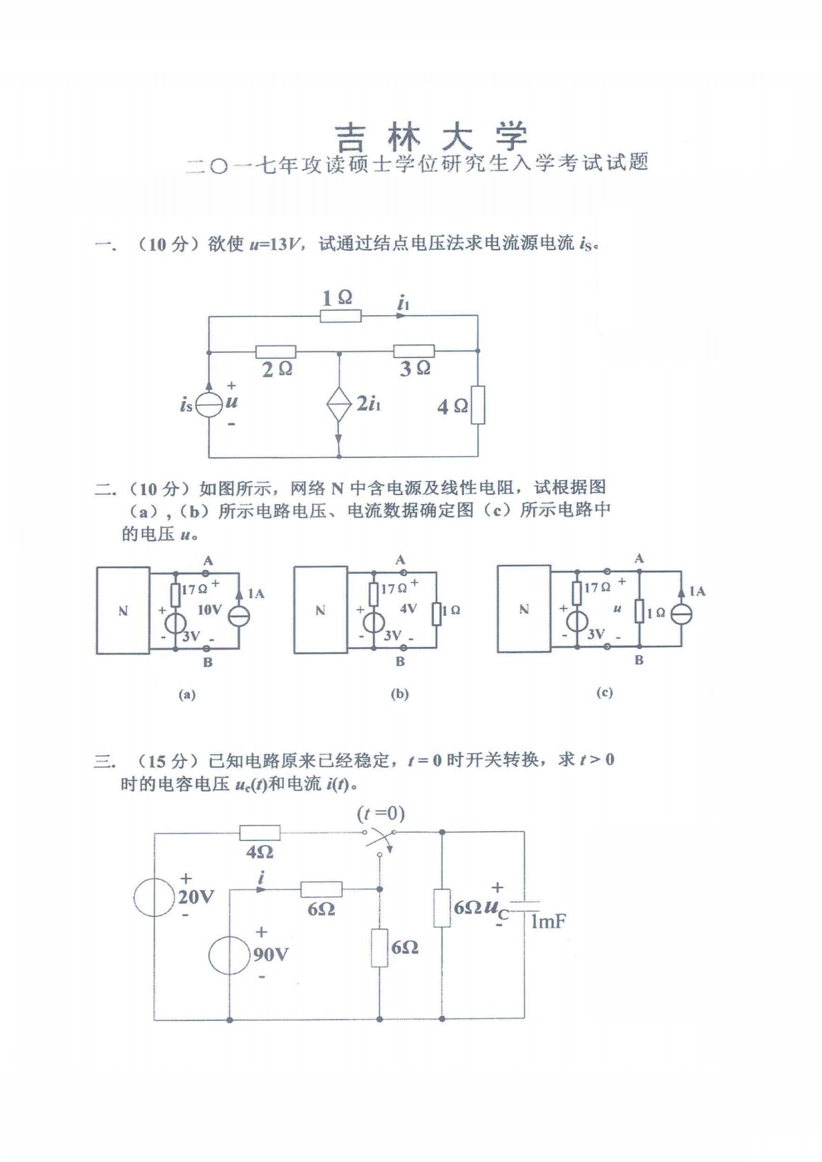 吉林大学900电路与数字信号处理2017年考研真题