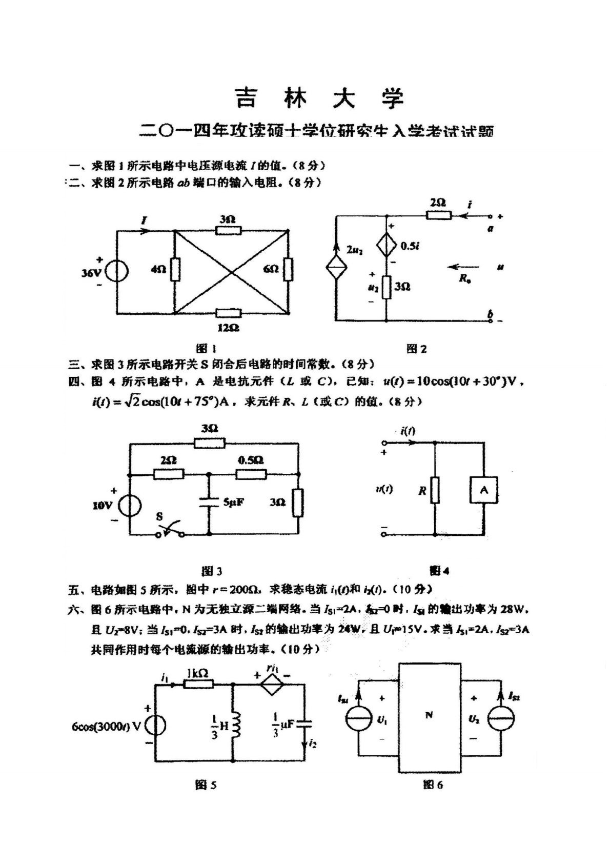 吉林大学848电路原理2014年真题