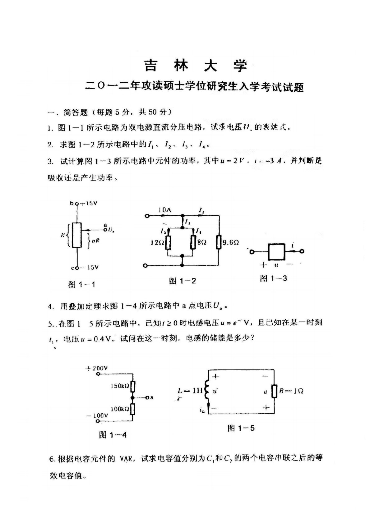 吉林大学848电路原理2012年真题