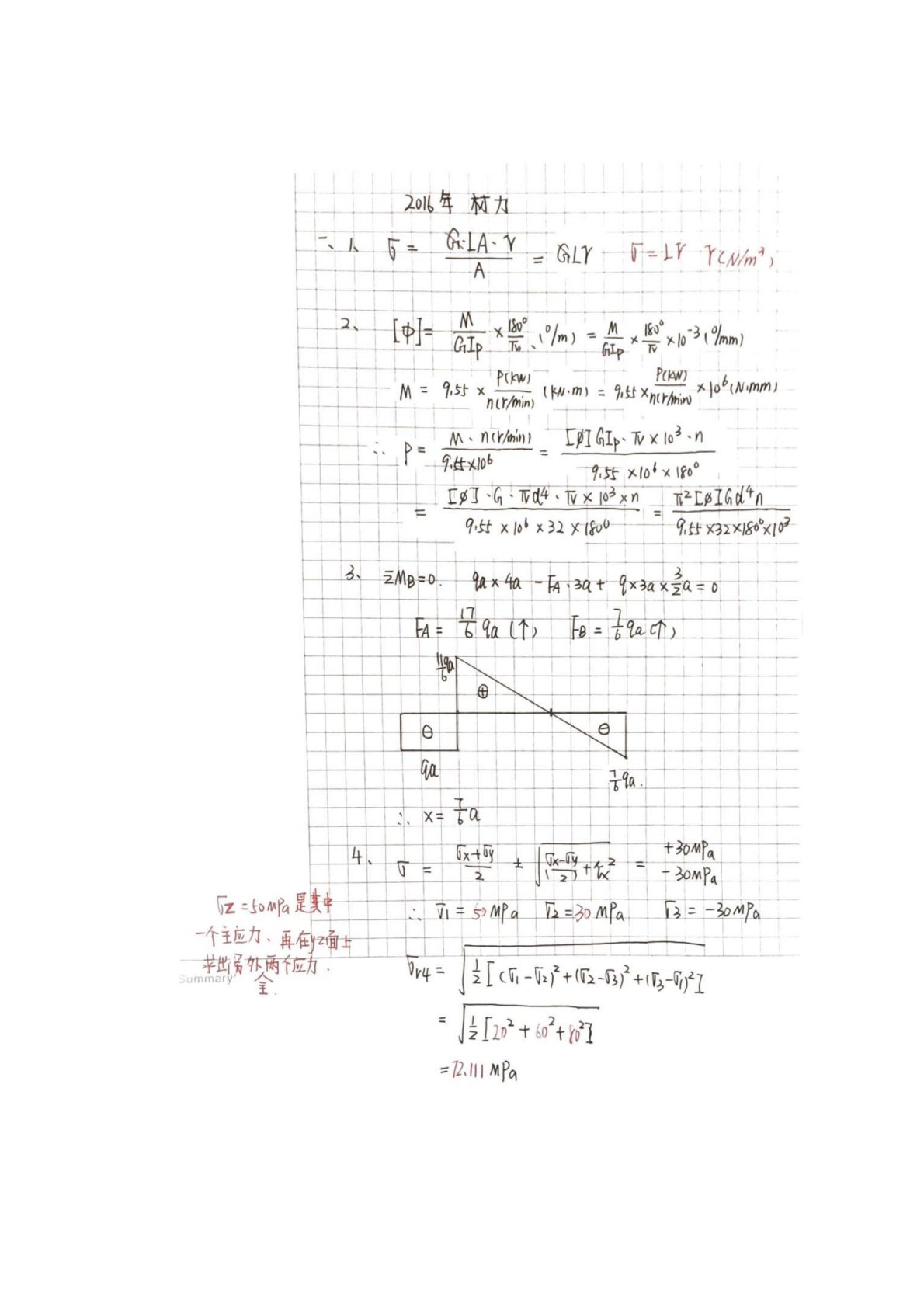 吉林建筑大学808材料力学2016年真题答案手写版