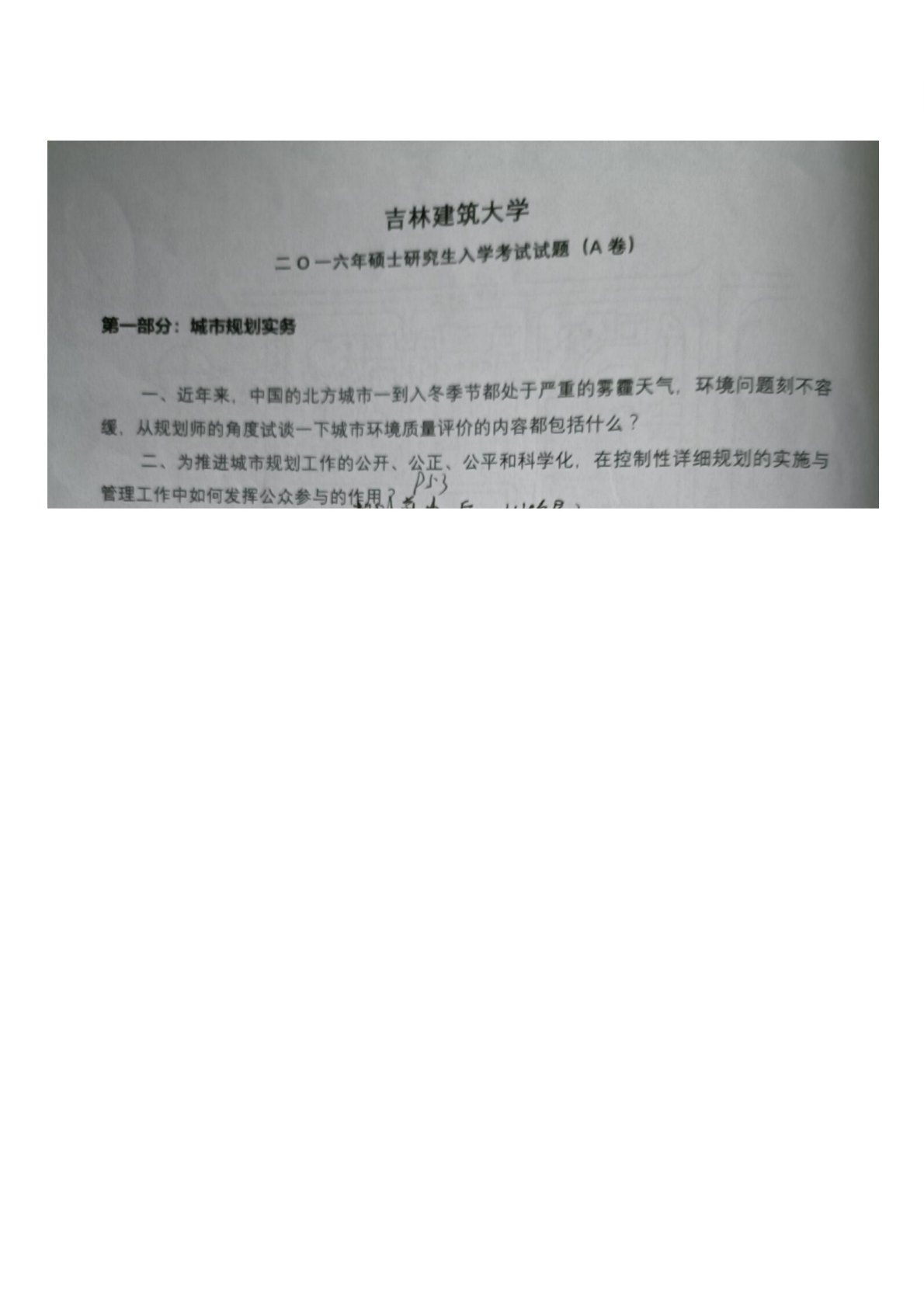 吉林建筑大学612城市规划原理2016年真题
