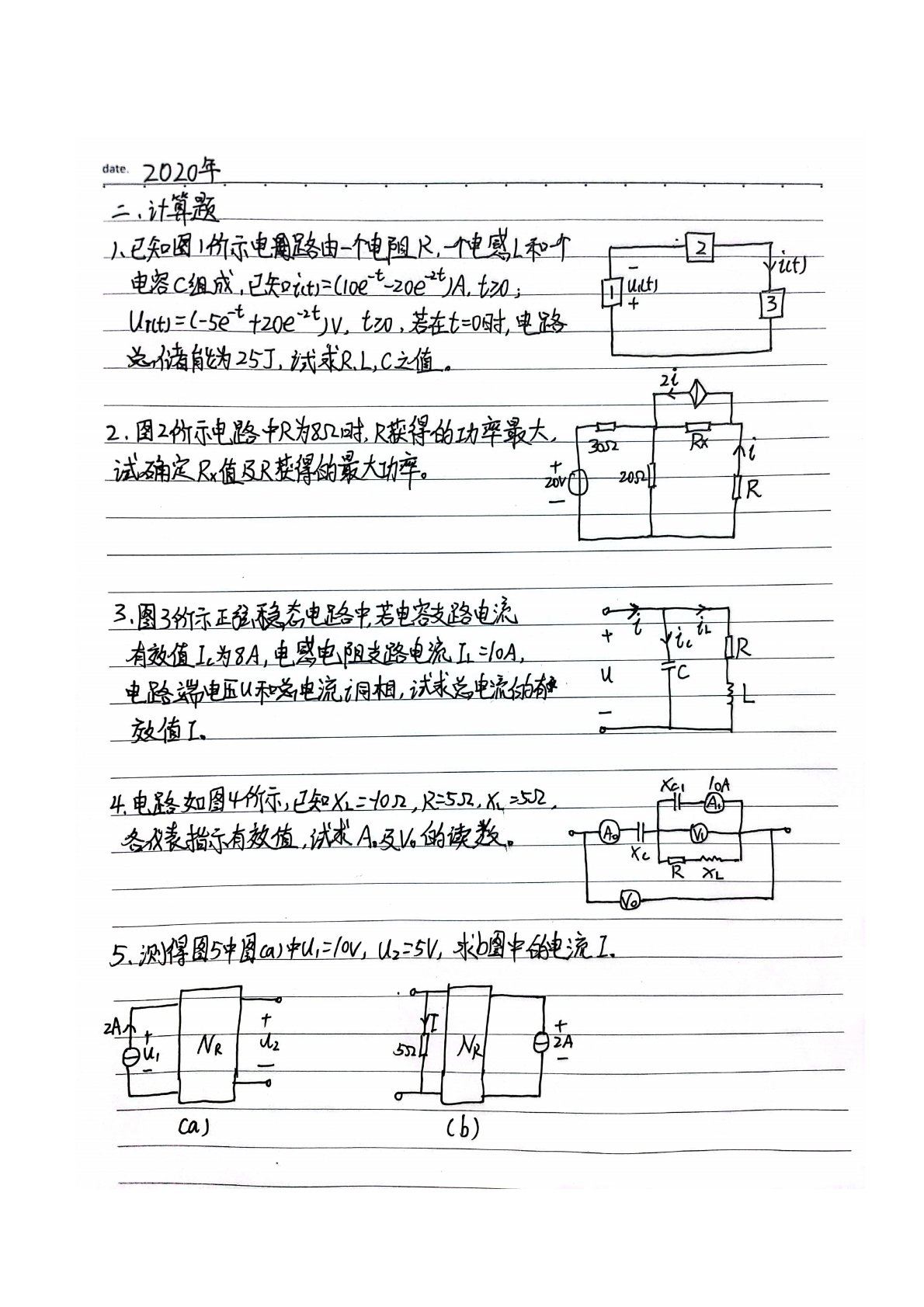 吉林大学848电路原理2020年真题回忆手写版