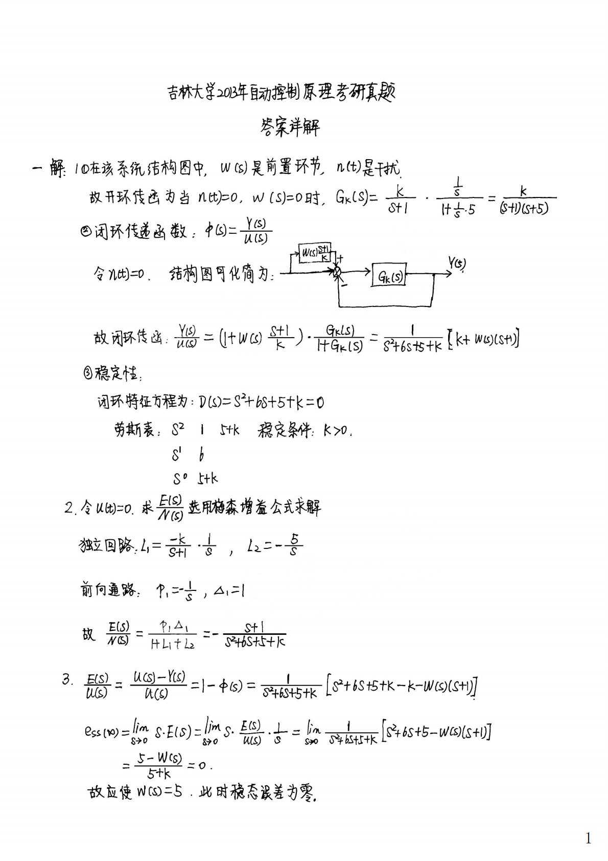 吉林大学901自动控制原理2013年真题答案