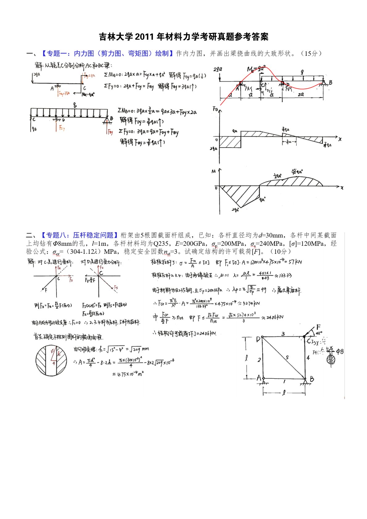 吉林大学2011年865材料力学考研真题参考答案