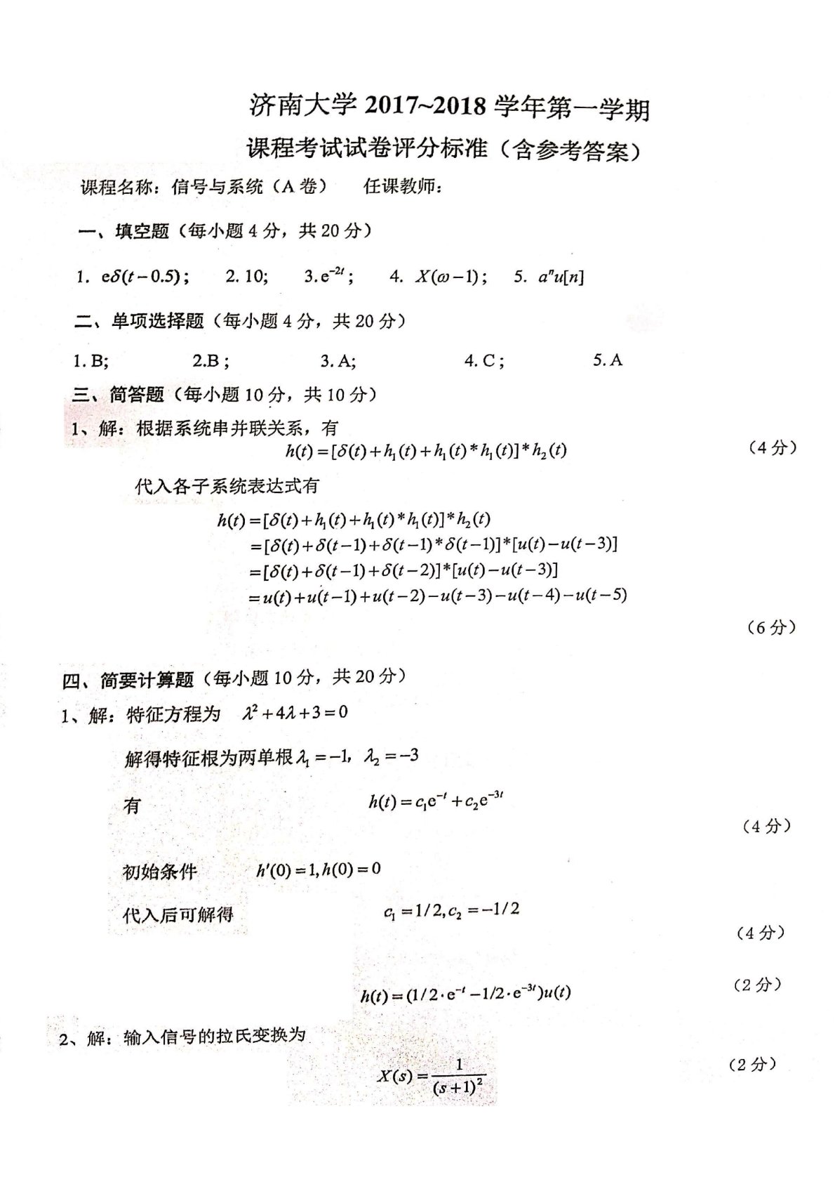 济南大学845通信原理2017-2018学年第一学期课程考试试题答案A卷