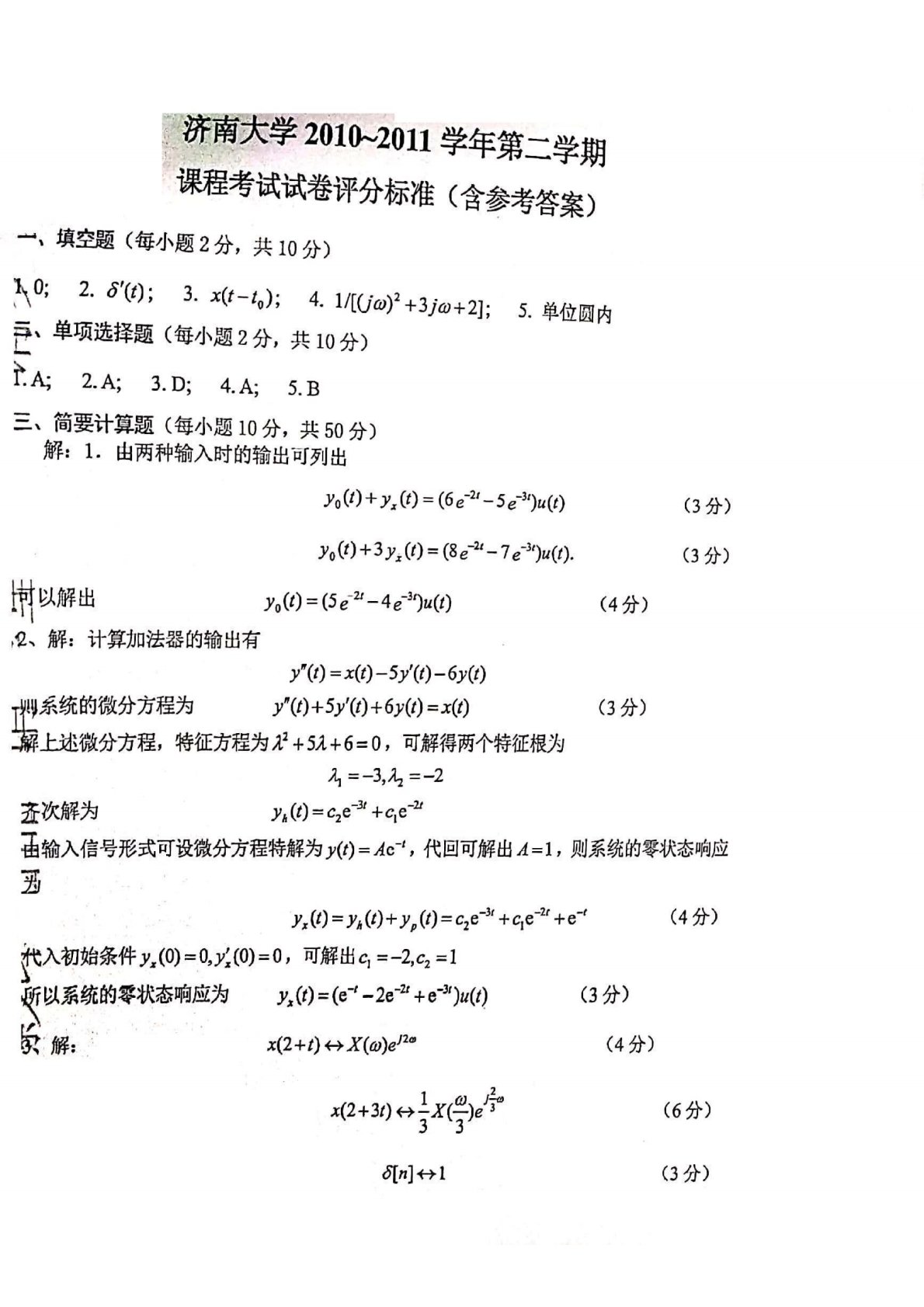 济南大学845通信原理2010-2011学年第二学期课程考试试题答案A卷