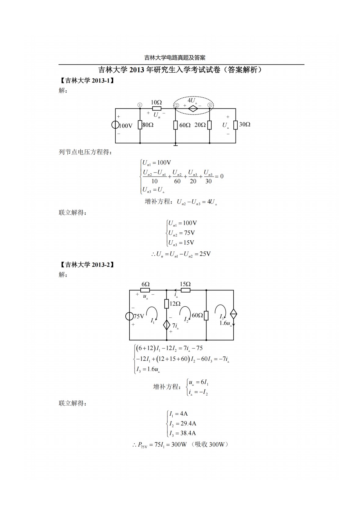 吉林大学848电路原理2013年真题答案